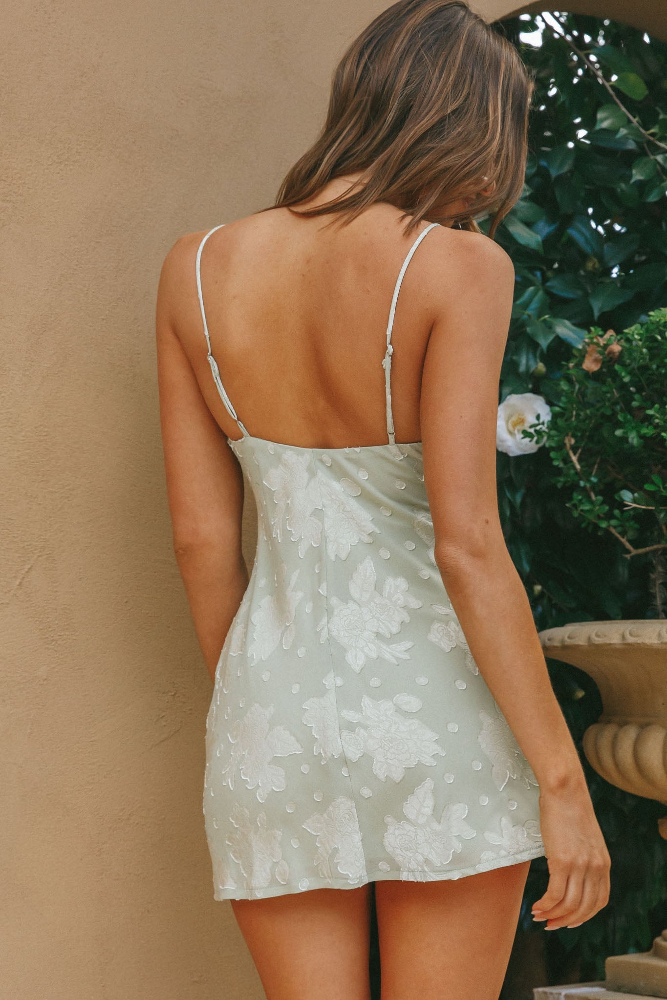 • Textured floral avocado color dress