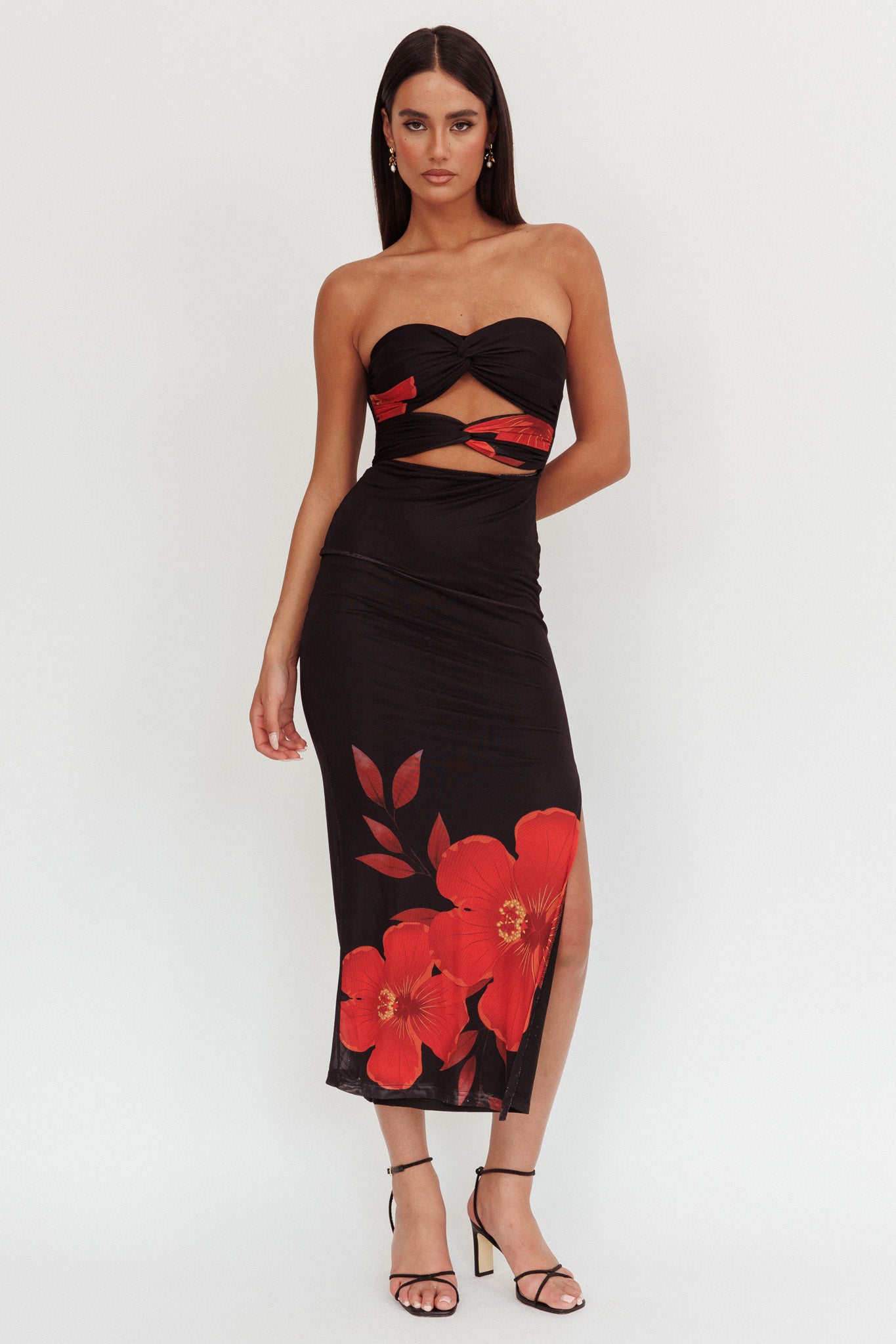 Silah Twist Bodice Maxi Dress Hibiscus Black