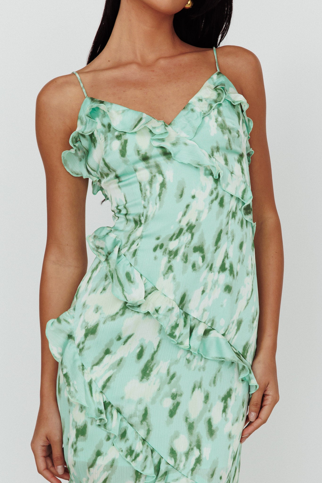 Make heads turn in our pretty Silvana dress. Featuring a pretty, mottled print and girly frill trim, it's perfect for a dinner date with your girls or a date with your love. Team it with kitten heels and a saddle bag for a look we are loving.