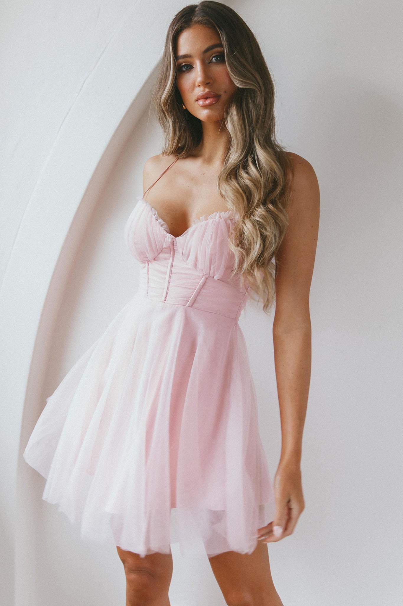 Smitten Sweetheart Neckline Chiffon Mini Party Dress Blush