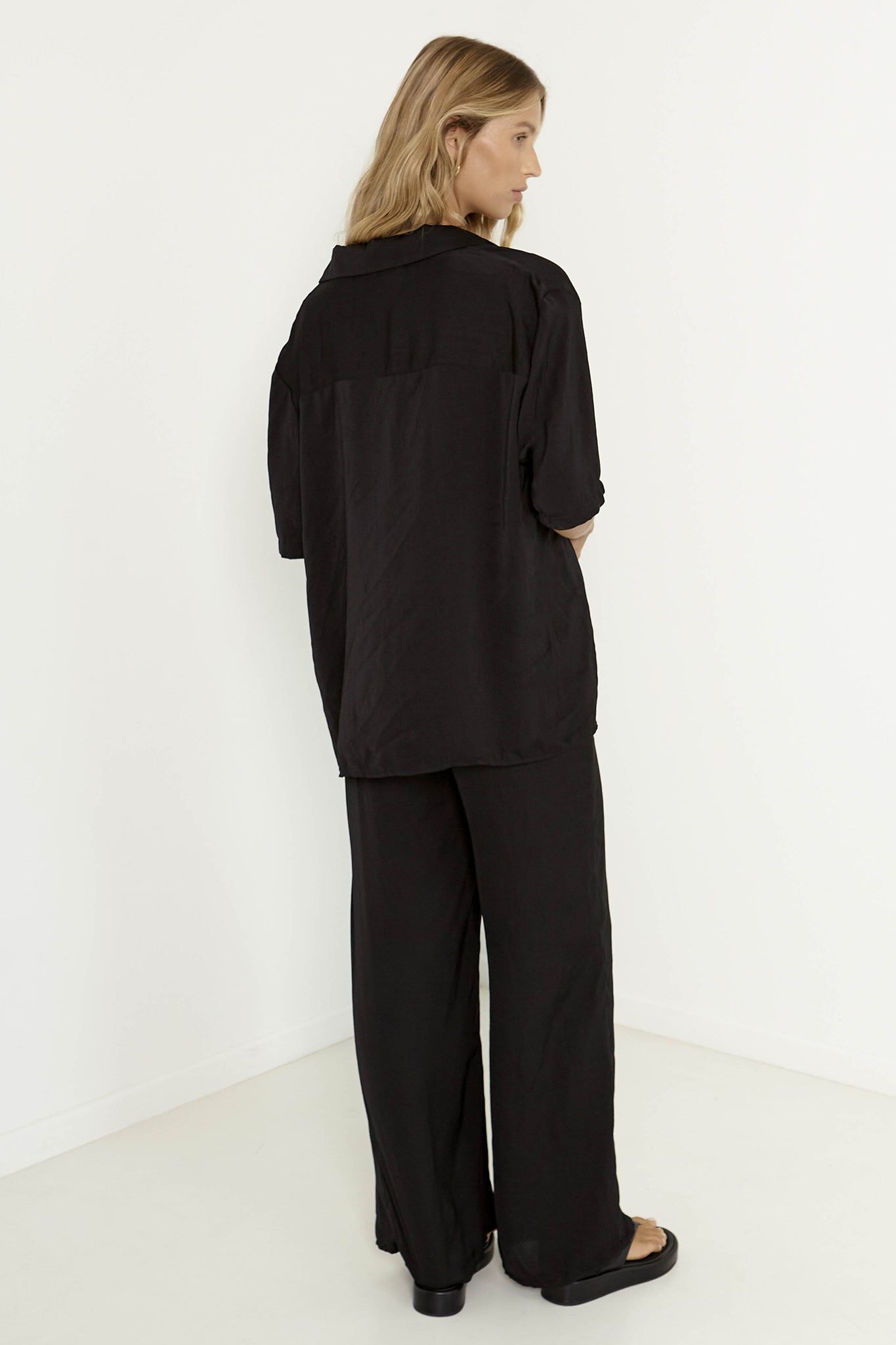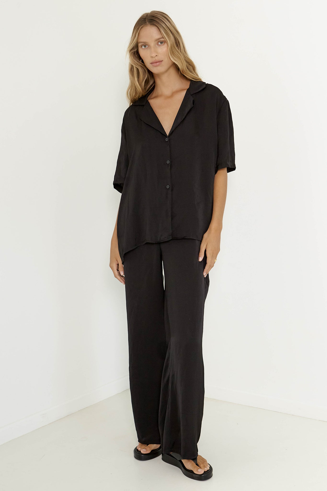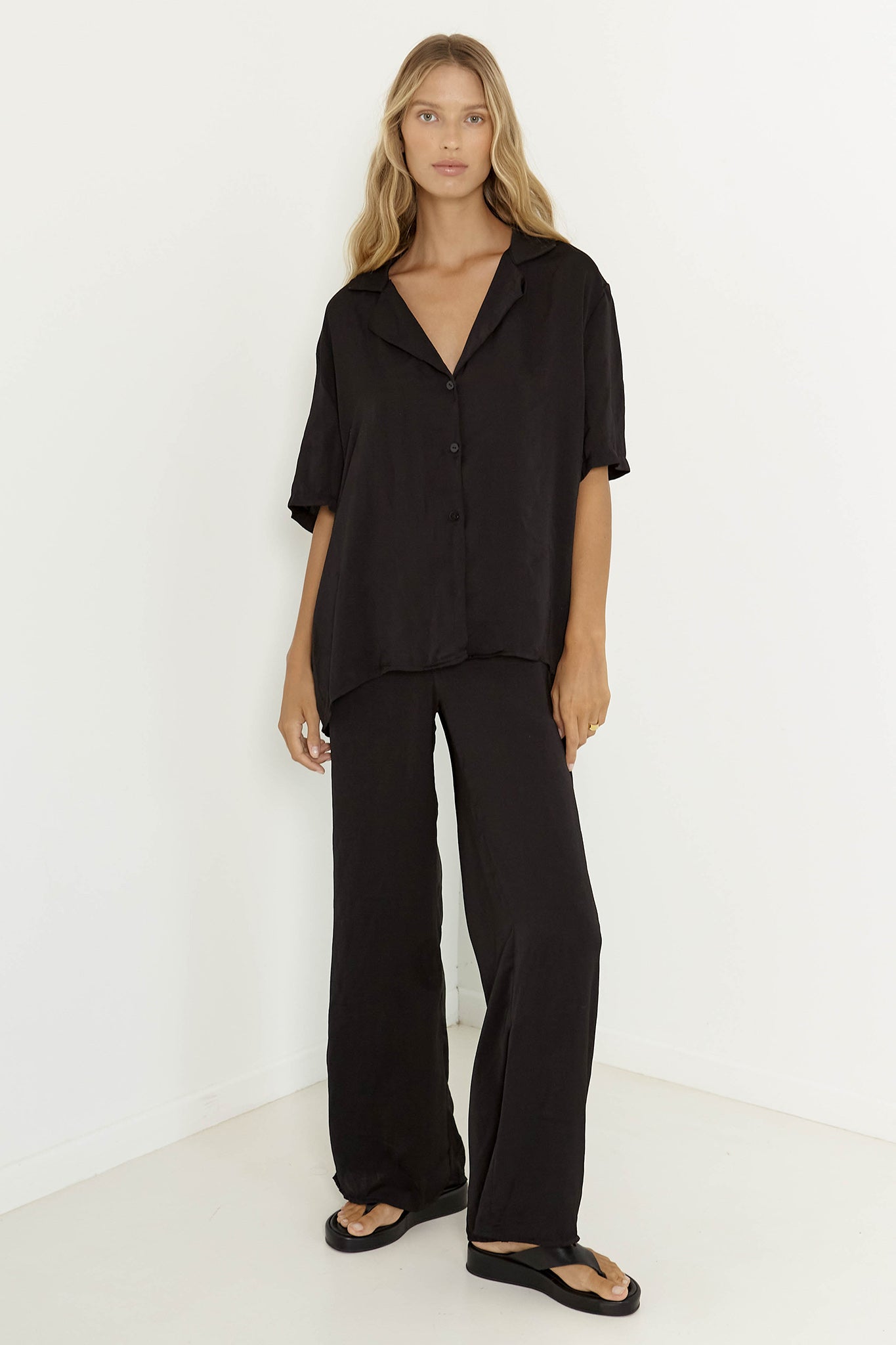 The ultimate day-to-night outfit, the Hallie shirt by SNDYS can be dressed up or down. Team it with the Hallie pant, heels and gold, statement earrings for cocktails with the girls or dressed down for Sundays strolling the markets. It features a satin-like material and a loose fit.
