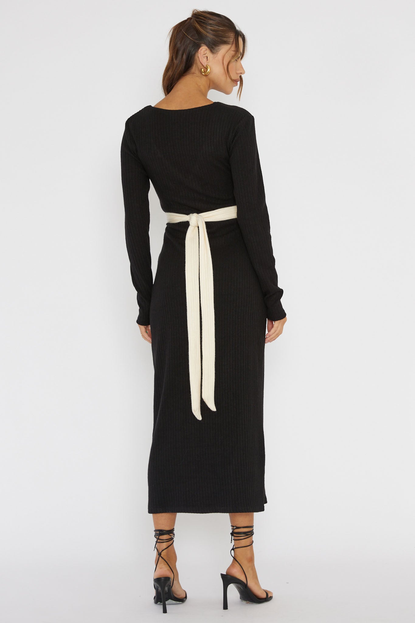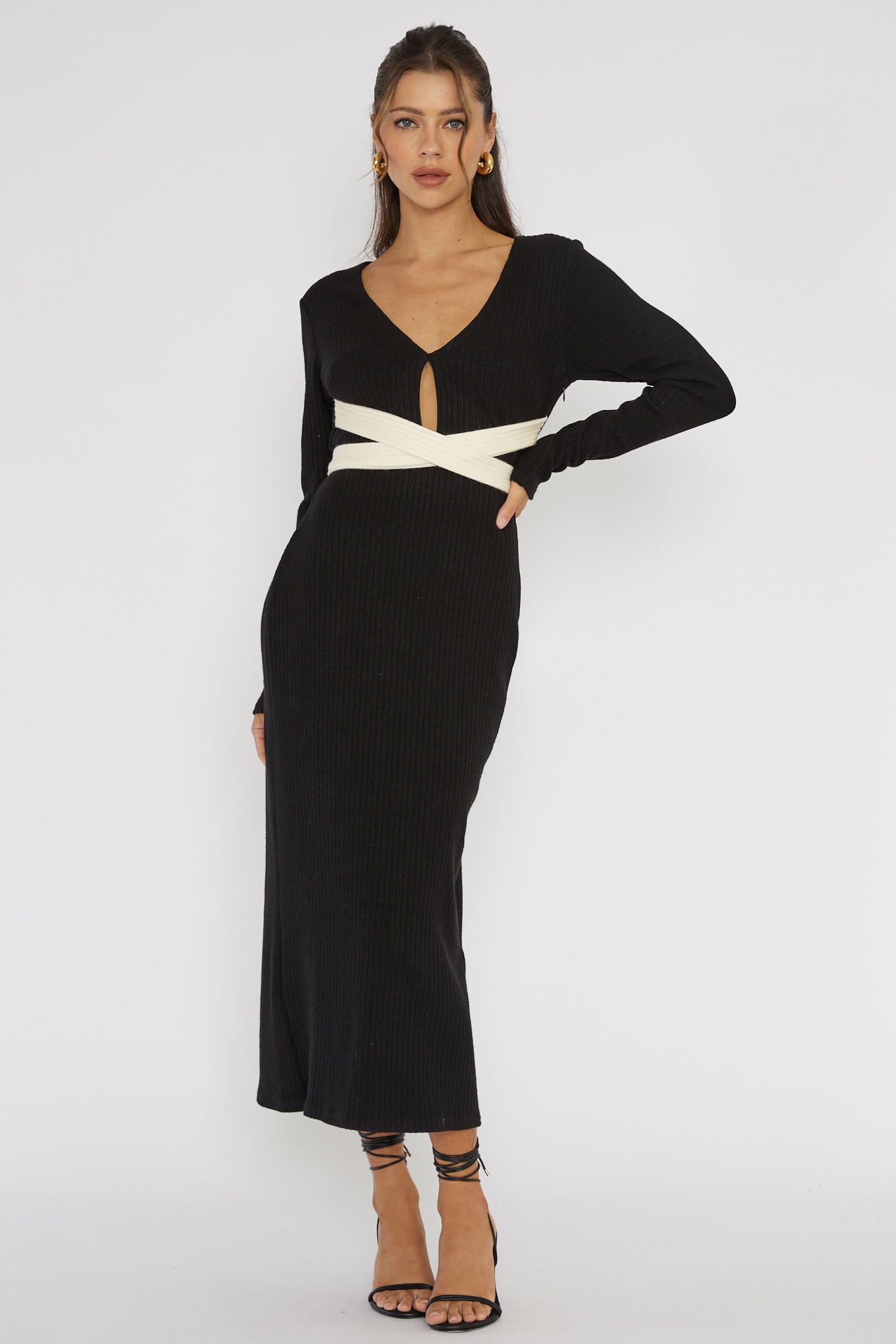 So Emotional Long Sleeve Cut-Out Knit Dress Black
