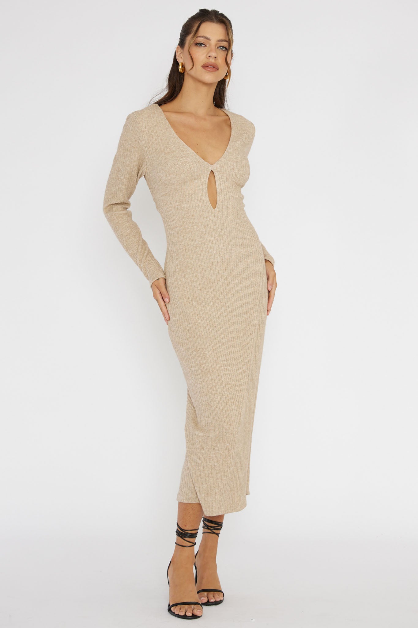 So Emotional Long Sleeve Cut-Out Knit Dress Oat