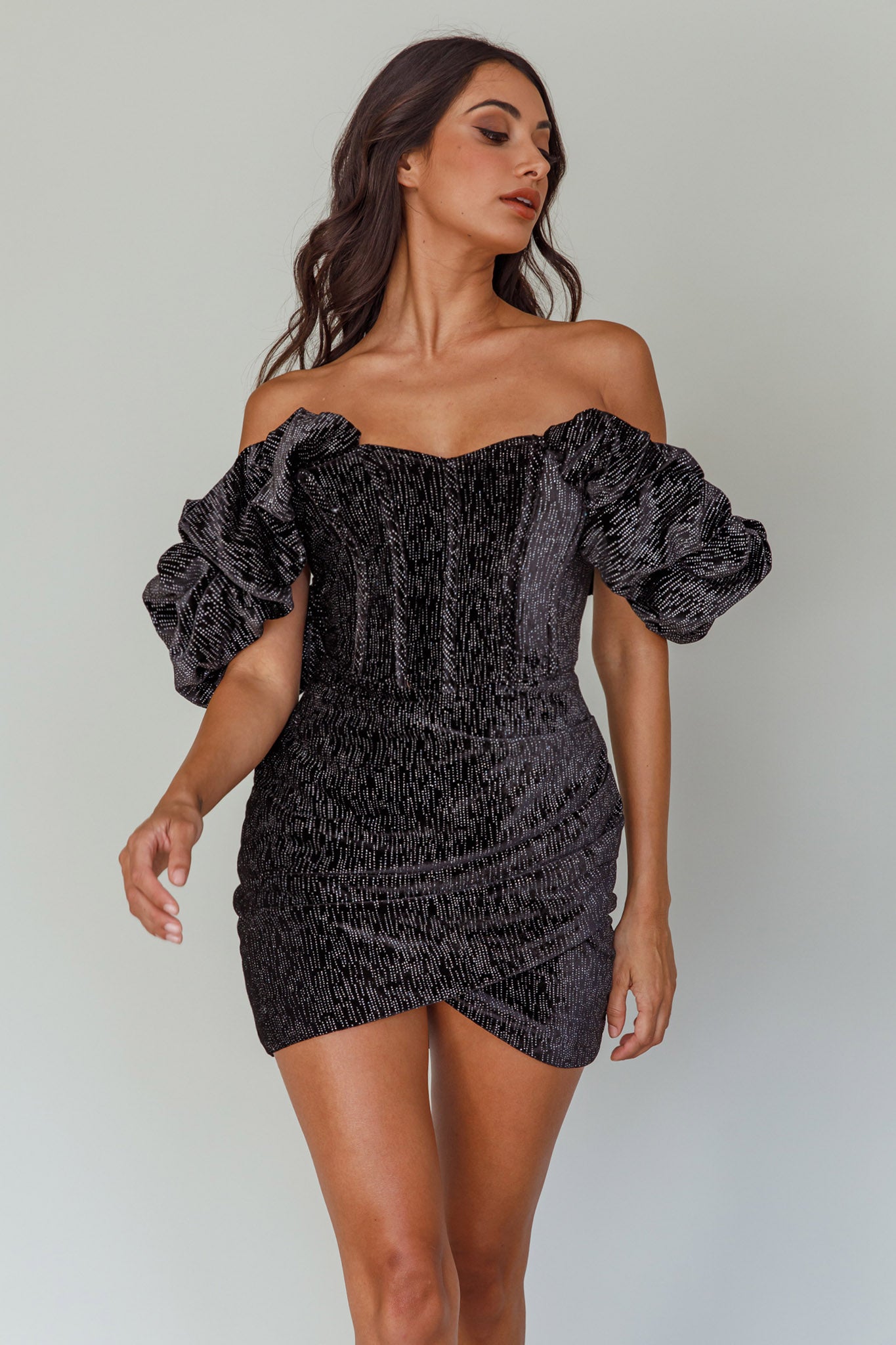 Steal the show in our gorgeous So Famous mini dress. Featuring off-shoulder puff sleeves and a wrap style skirt. It's perfect for a special birthday celebration. Team it with silver platform heels and a clutch for an unforgettable look.