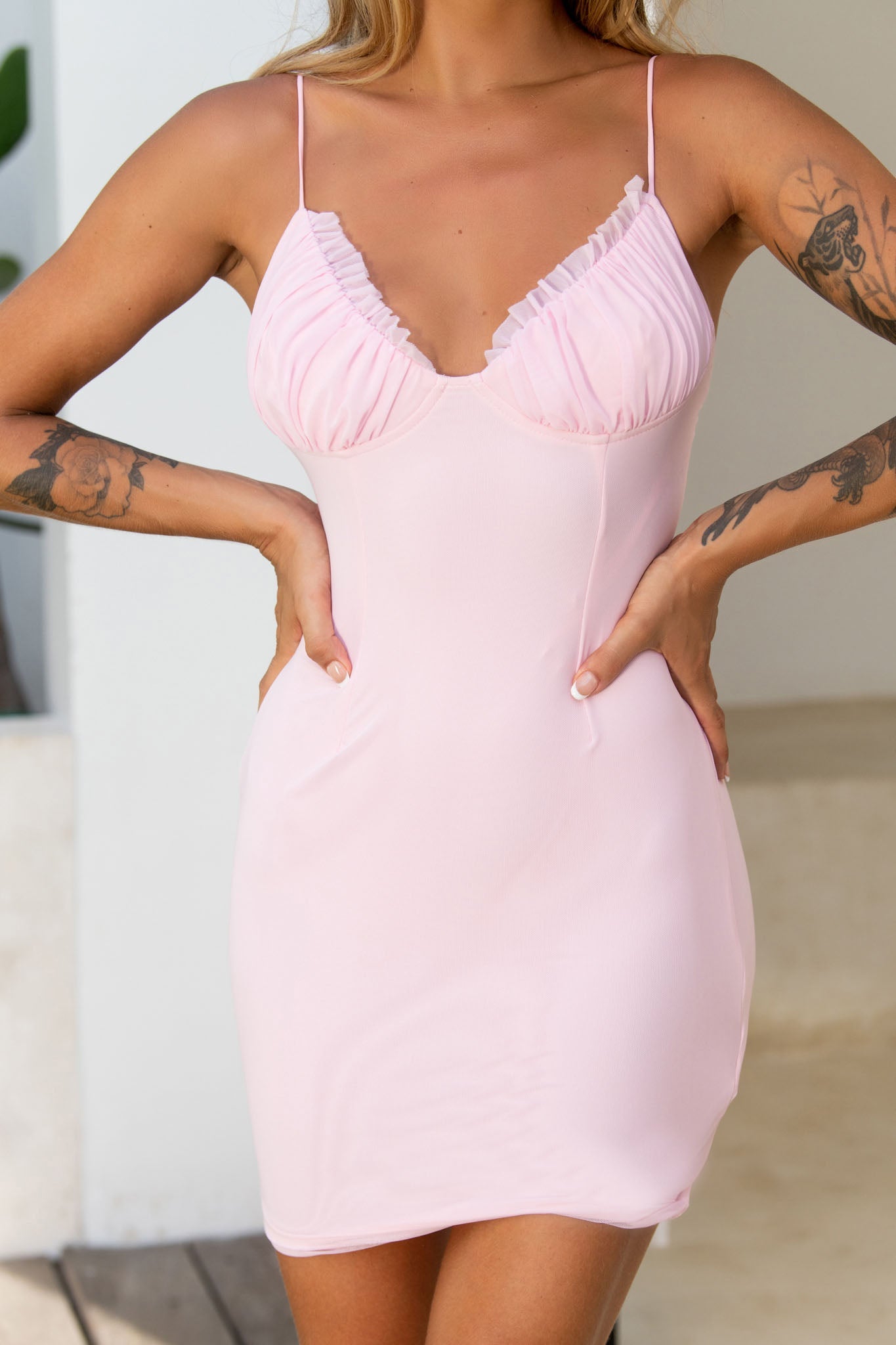 You will slay in this hot af mini dress. It's simple but sexy and we are loving the gathered detail bust cups and frill trim. Perfect for a hot date night teamed with your fave strappy stilettos and a clutch. Okay, queen!