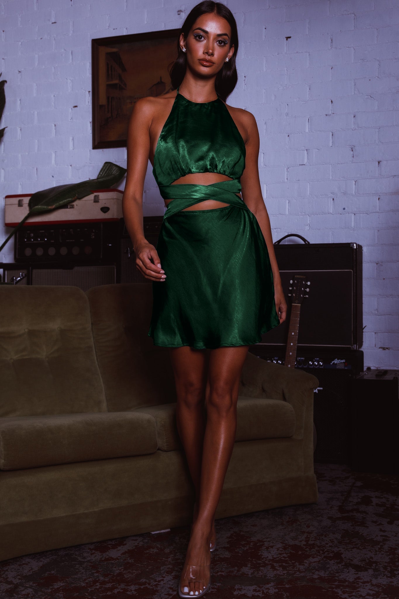 You'll cause quite the commotion in our hot Social Butterfly mini dress. Featuring a cut-out waist and flattering halterneck style. Perfect for a birthday celebration teamed with strappy tan heels and a small purse.