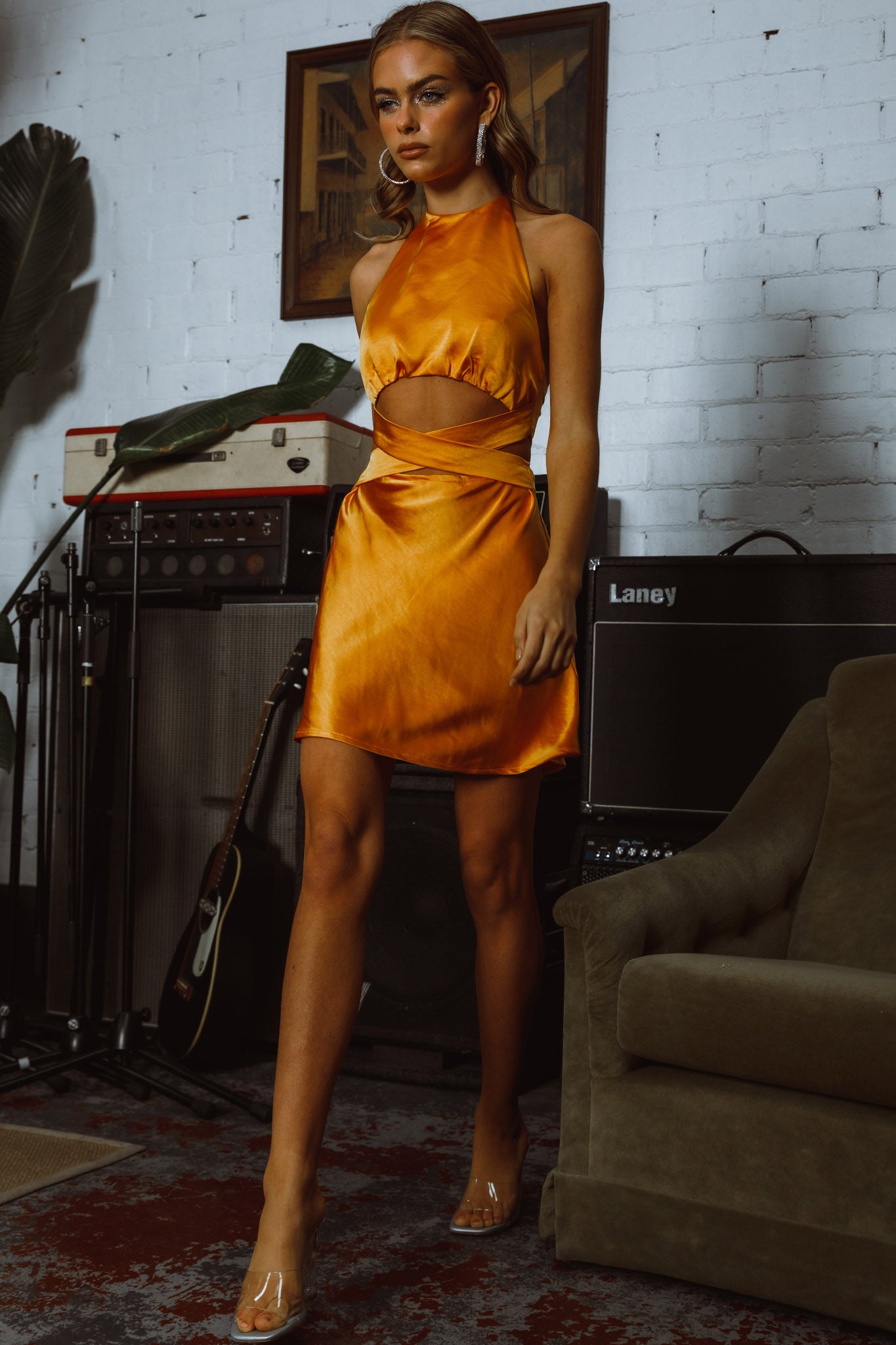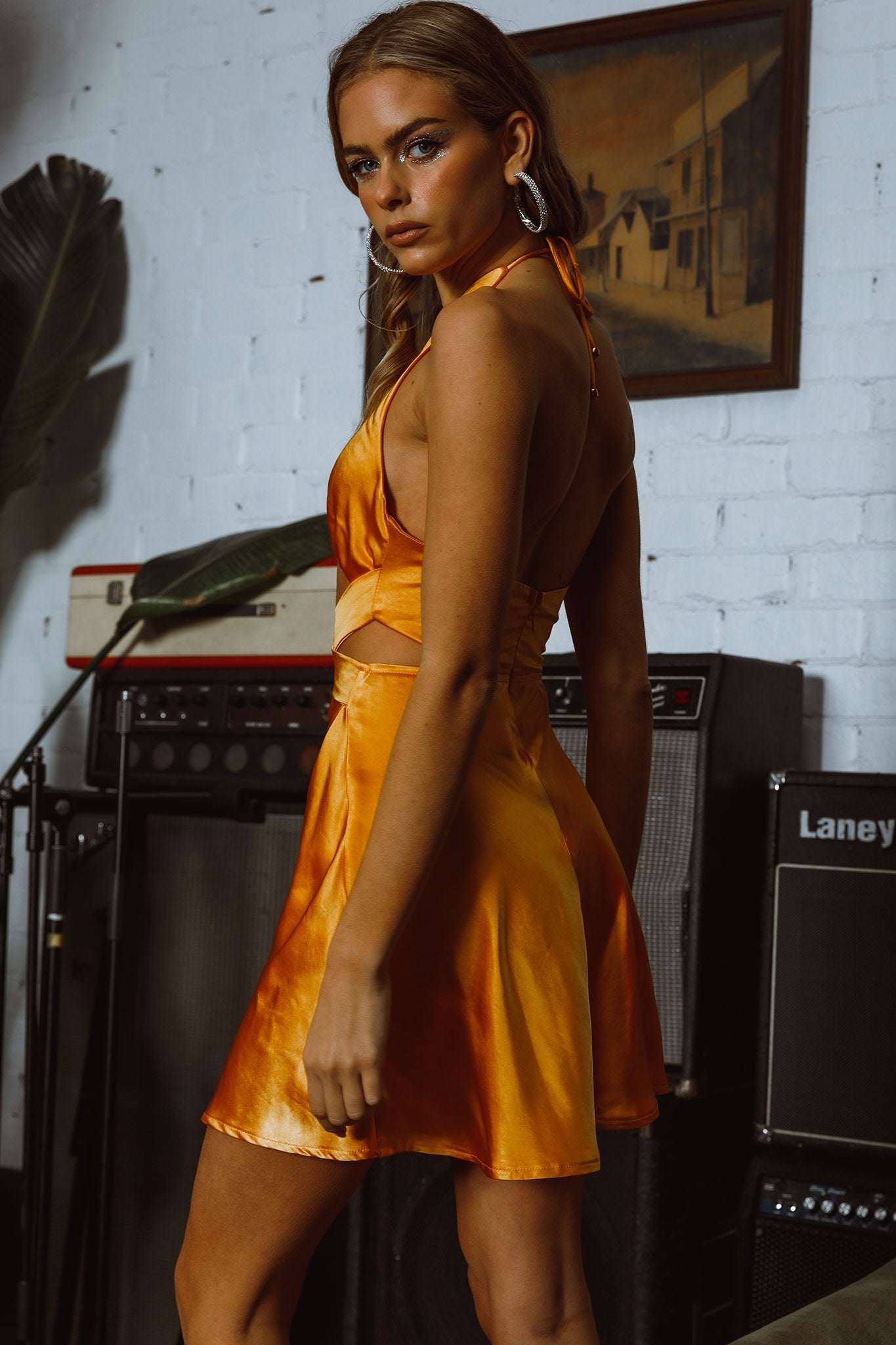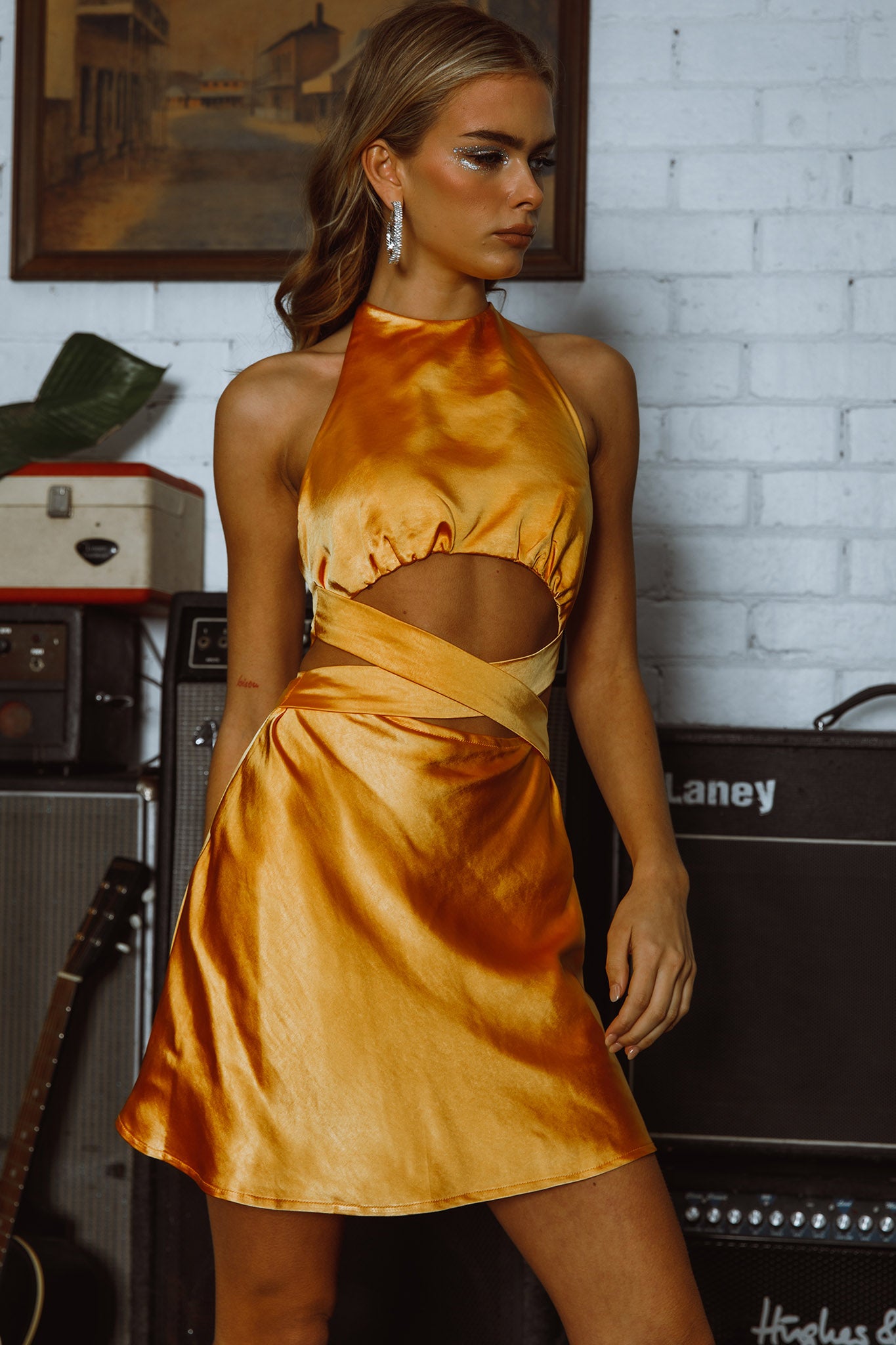 You'll cause quite the commotion in our hot Social Butterfly mini dress. Featuring a cut-out waist and flattering halterneck style. Perfect for a birthday celebration teamed with strappy tan heels and a small purse.