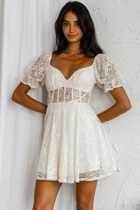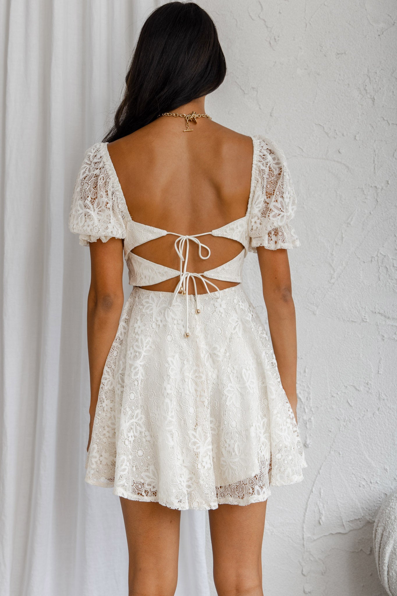 You'll be the picture of innocence in our super cute Soho mini dress. Featuring puff sleeves and a tie-up back. Perfect for a bridal shower or graduation. Team it with strappy, white heels and a mini tote for a look we are loving.