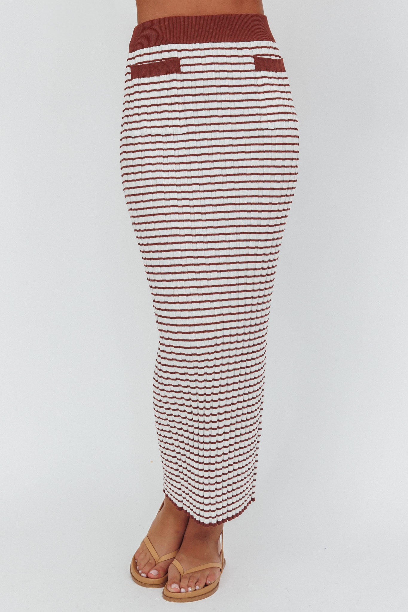 Solar Flare Knit Pocket Maxi Skirt Stripe Brown/Oat