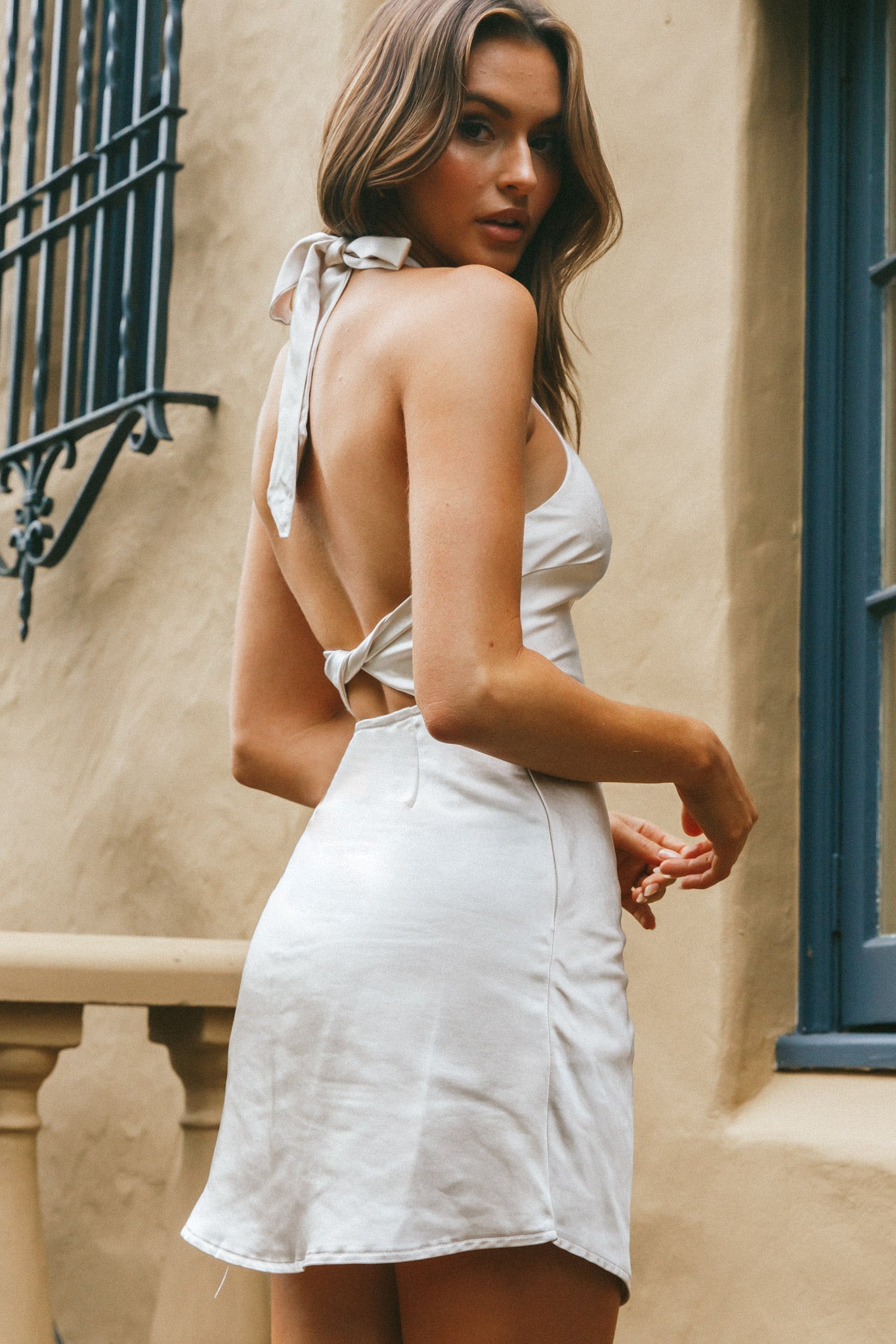 Sonoma Halterneck Faux Wrap Twist Back Mini Dress Oyster