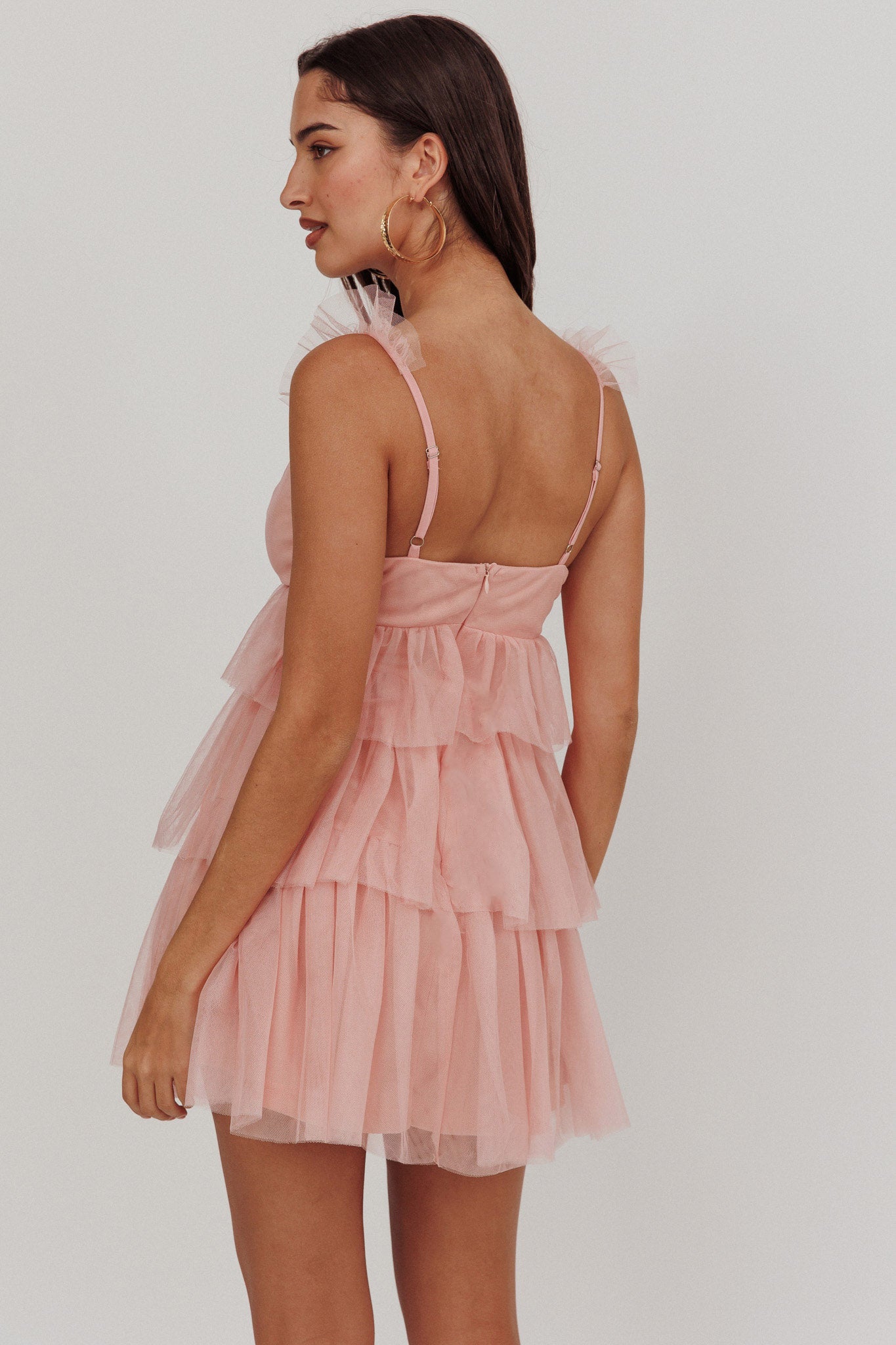 Sorbet Sky Tiered Tulle Mini Dress Pink