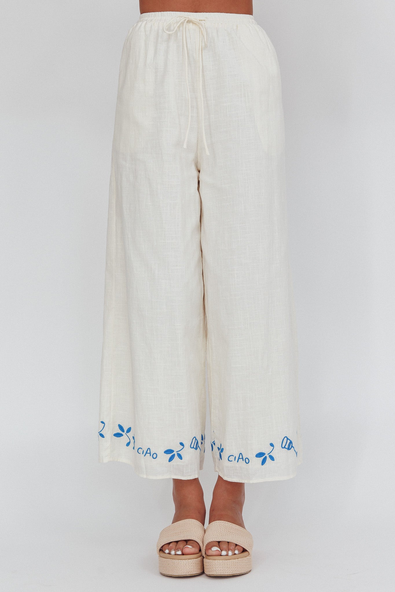 Sorrento Summer Embroidered Wide-Leg Pants Beige