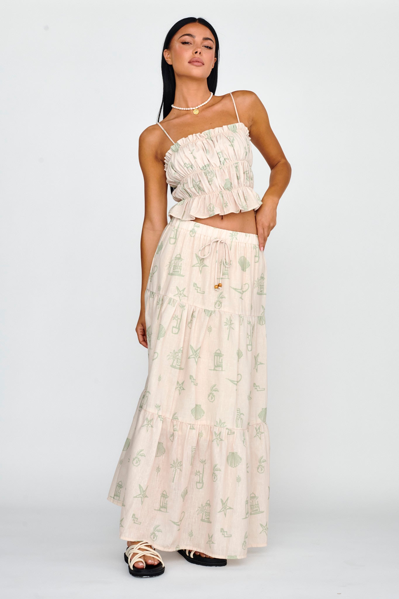 Float through your day in our pretty South Bay top. Featuring a super cute print and elasticated ruching detail. It's perfect for Sunday brunch with your besties. Team it with its matching skirt and sandals for a chic look that will turn heads.