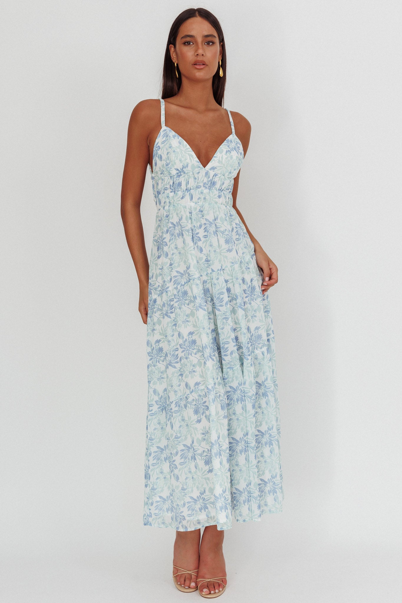 South Pacific Strappy Back Maxi Dress Floral Blue