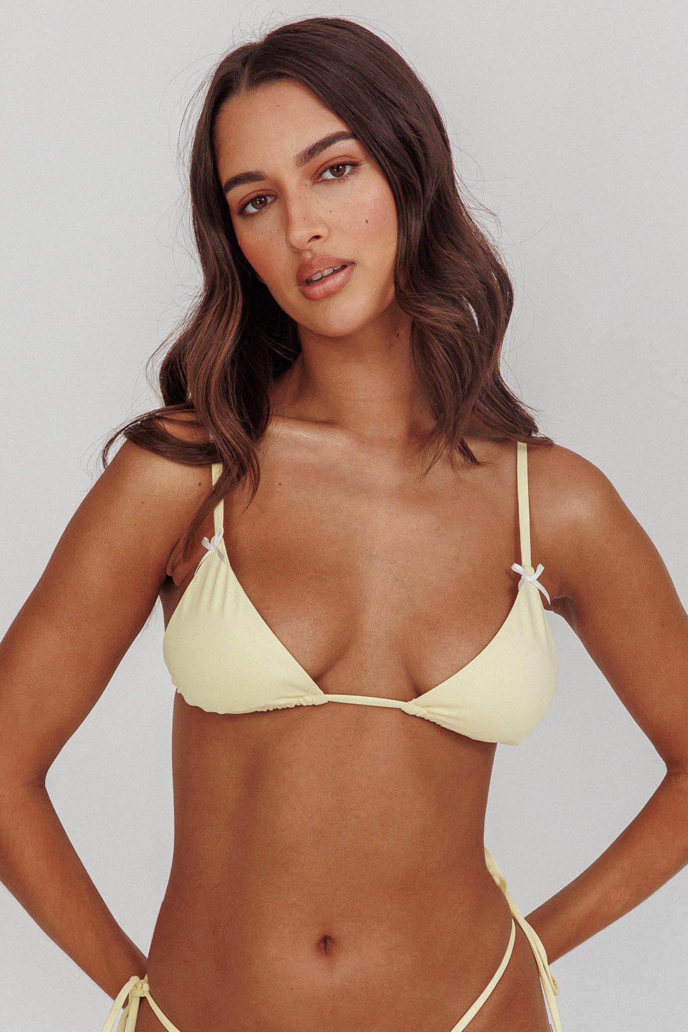 Sovereign Triangle String Bikini Top With Bow Butter