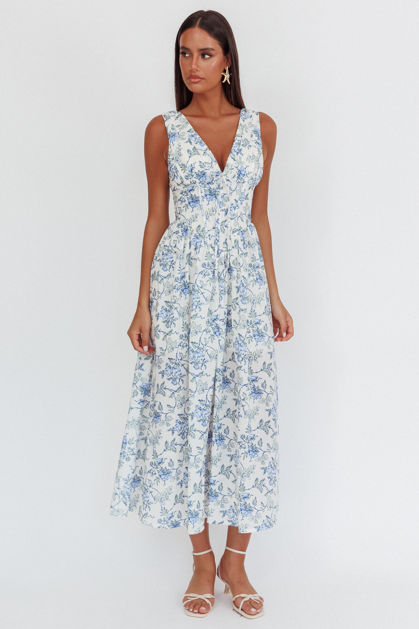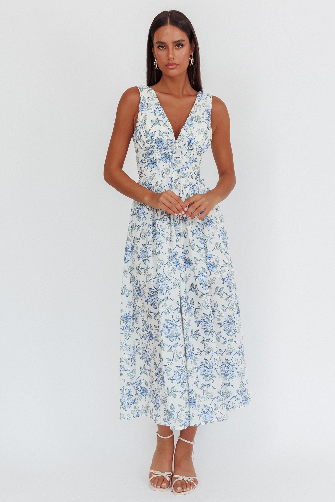 Spring Dawn Basque Waist Maxi Dress Floral Blue