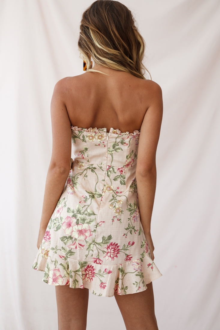 Stacey Frill Bustier Wrap Dress Floral Print Nude