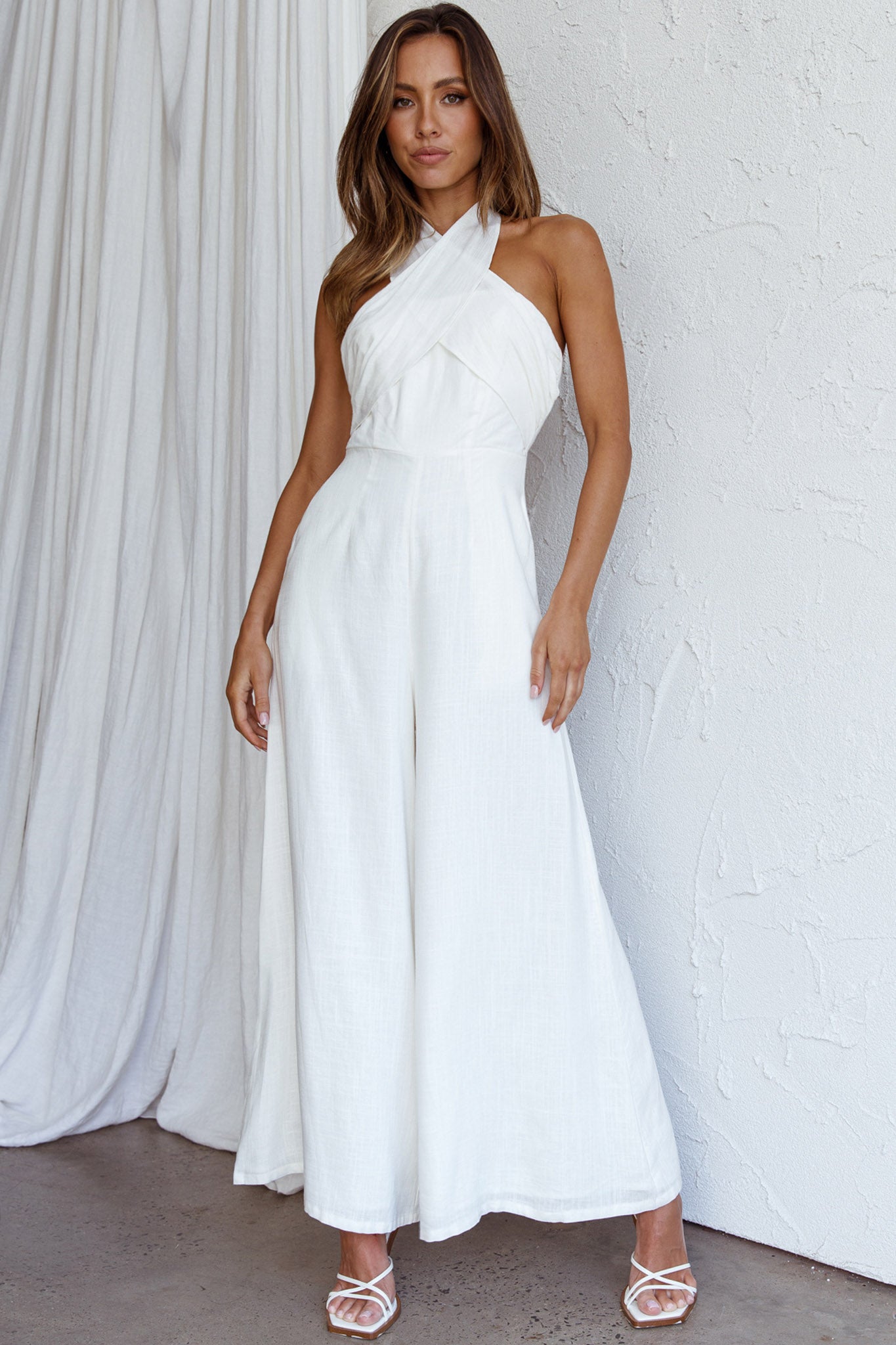 Your closet is calling, it needs this jumpsuit. Our Stars Align jumpsuit is begging to be worn at your next sunset happy hour. We are in love with its cross-over halter neckline and Summery hue. Team it with a small tote and heels for a super cute look.