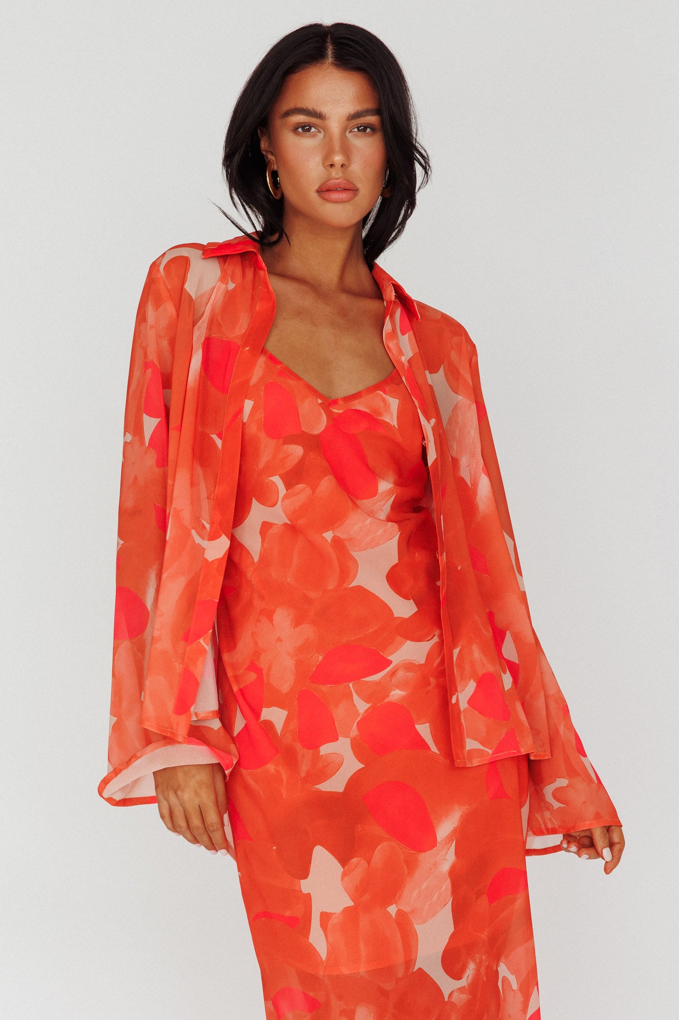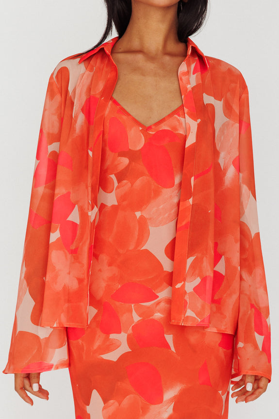Stasi Flared Cuff Long Sleeve Shirt Floral Orange