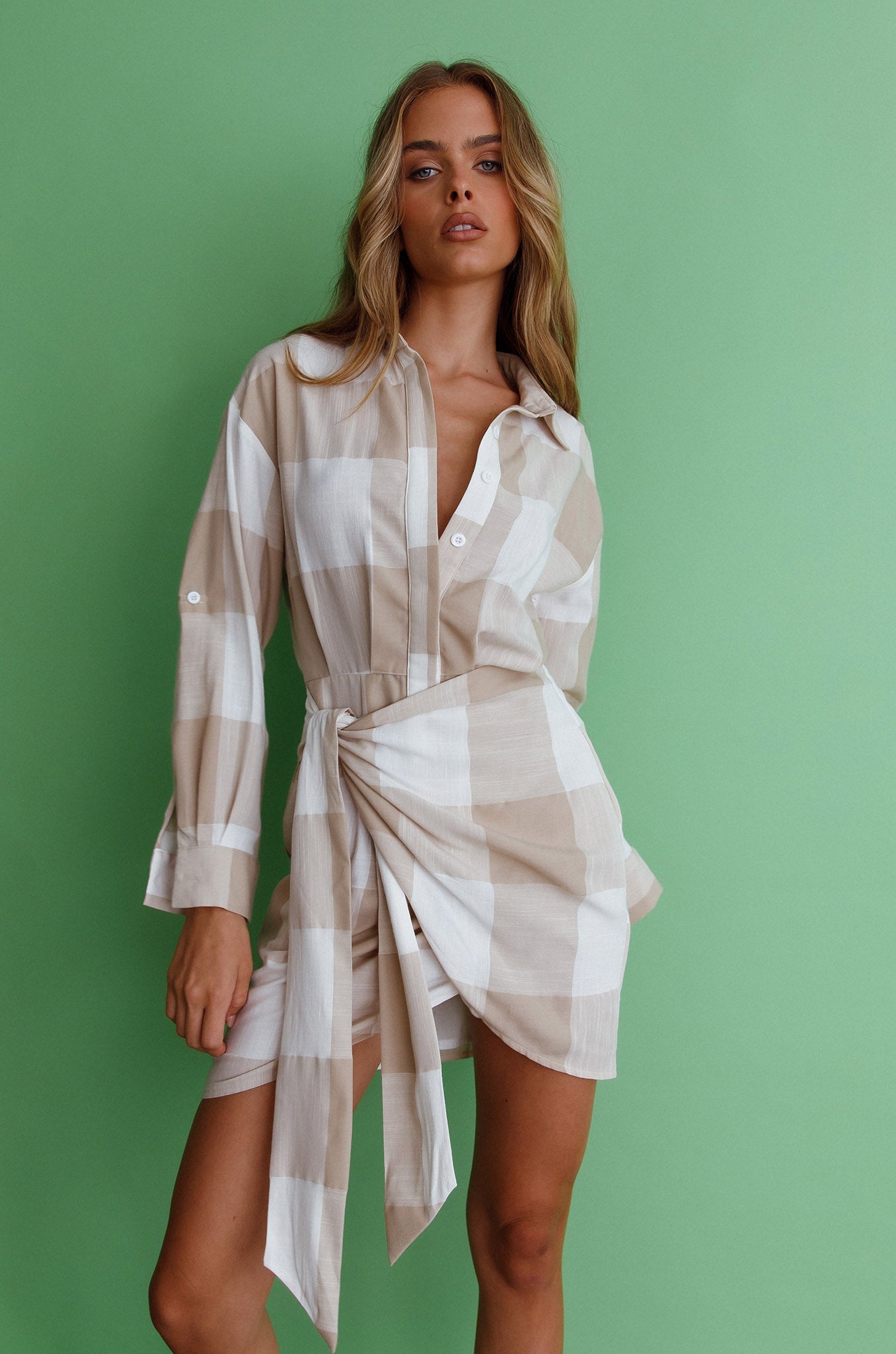 Strut your stuff in our chic Staten Island dress. We are obsessed with its shirt-dress style and wrap skirt. Perfect for weekend lunch dates or wear it to your 9-5. Team it with nude heels and a tote for a look we are loving.