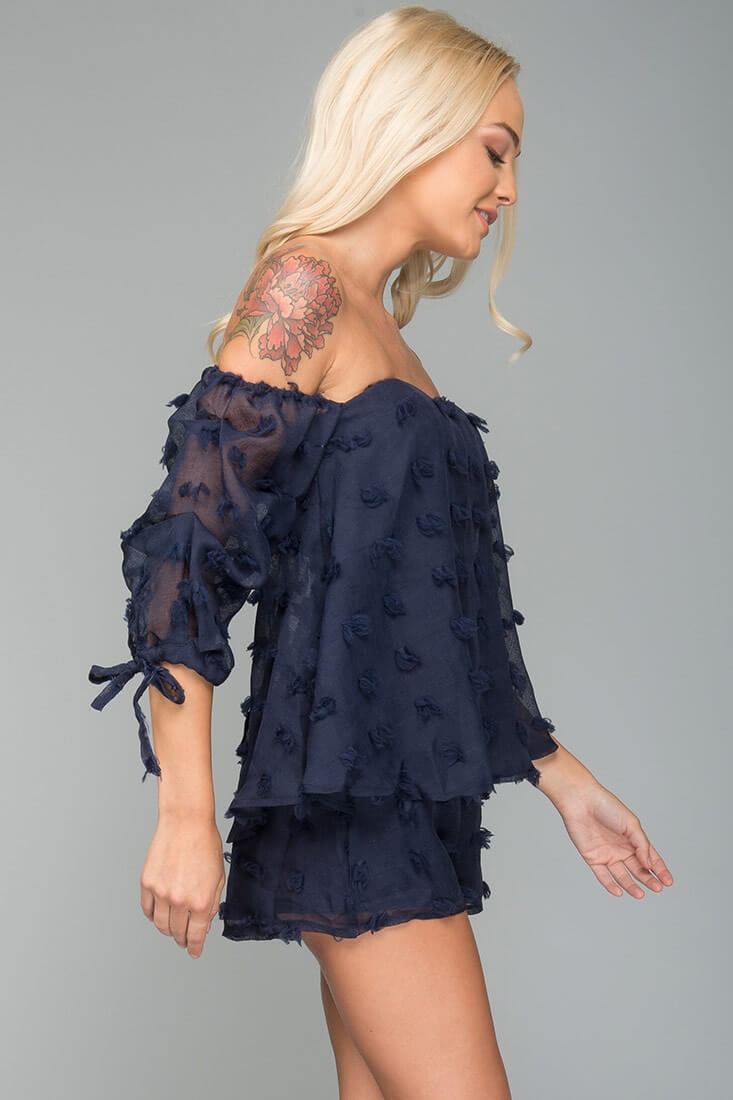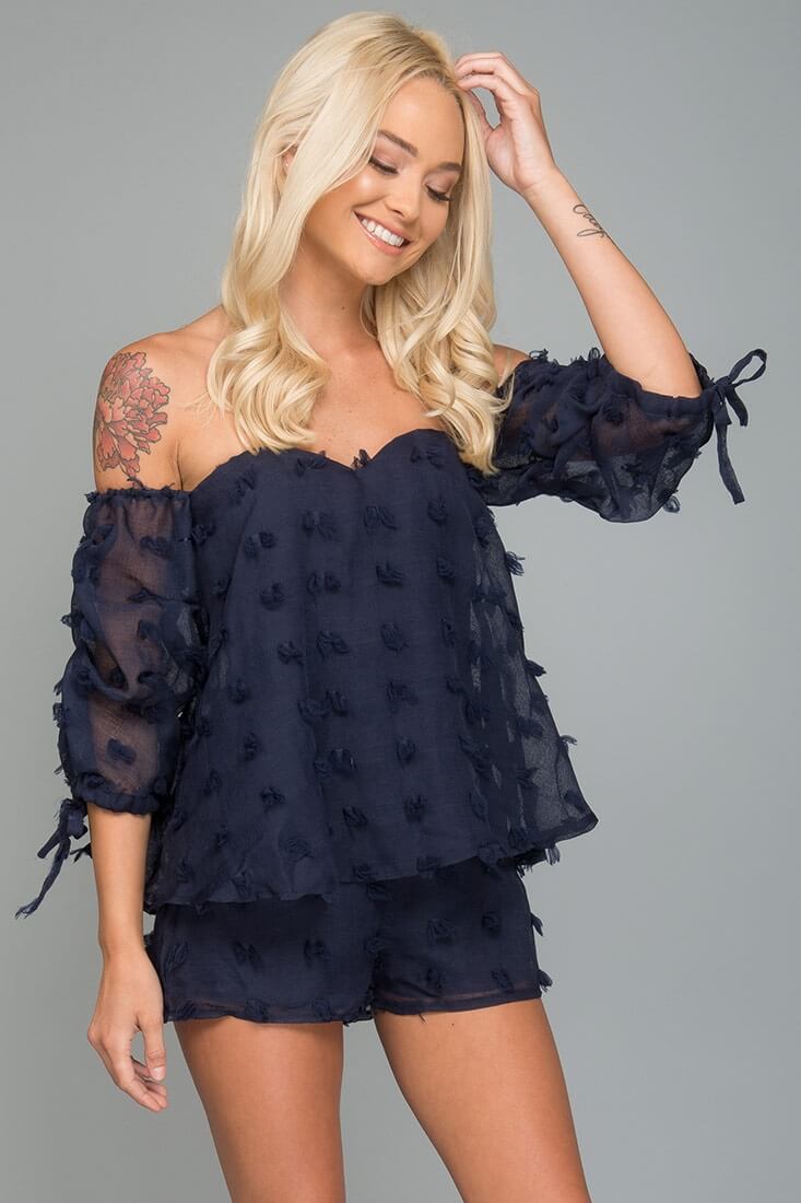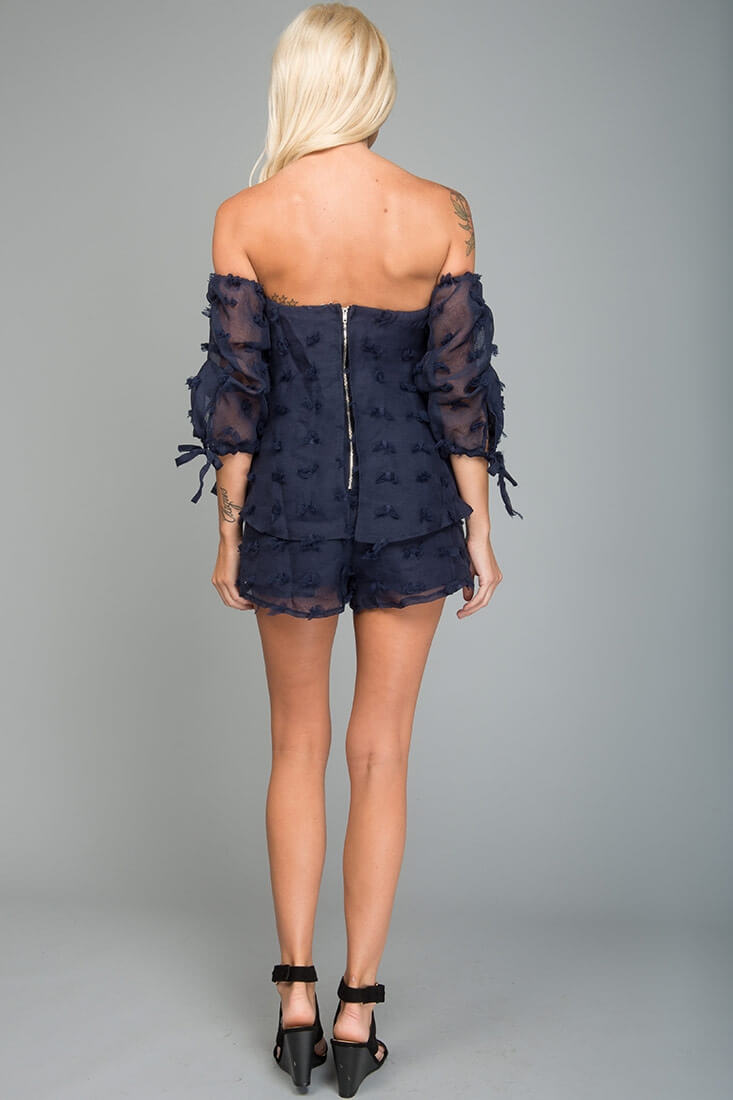 Stefani Heart Shaped Off the Shoulder Romper Navy