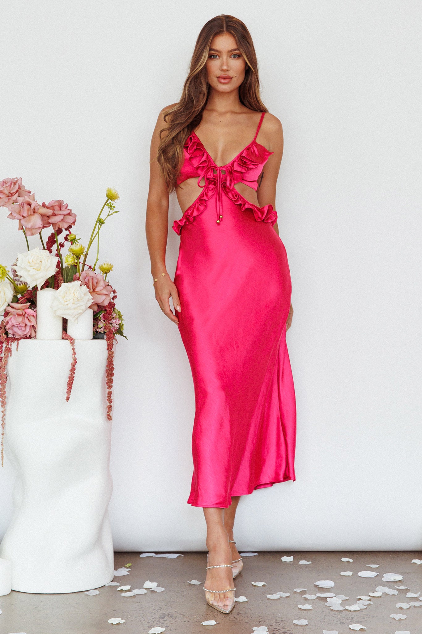 Stole My Heart Frill Trim Maxi Dress Hot Pink