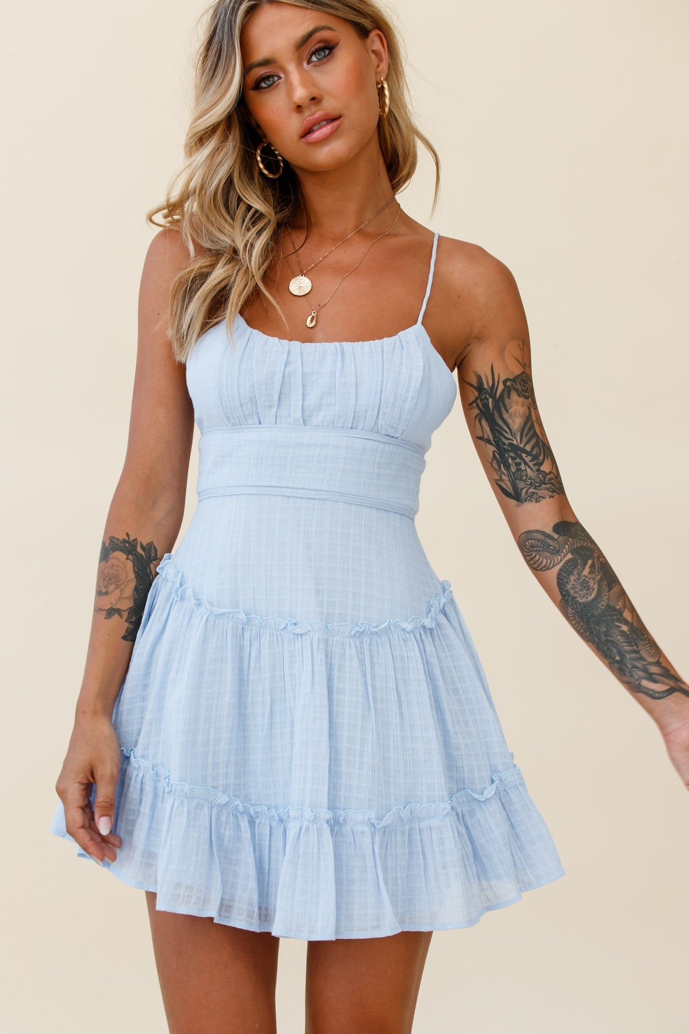 Stolen Moments Cami Strap Ruffle Dress Steel Blue