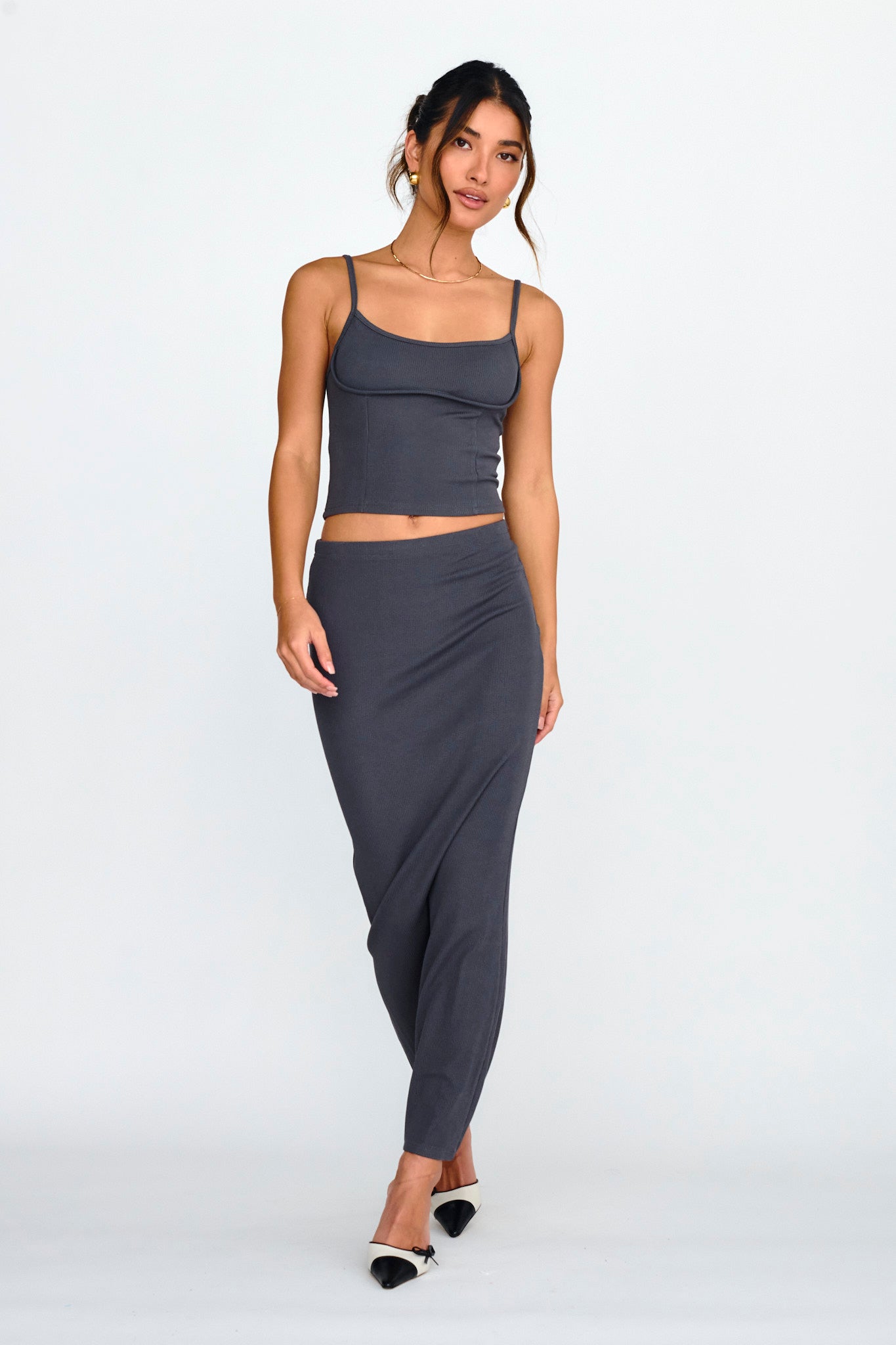 Strike A Pose Ribbed Maxi Skirt Charcoal