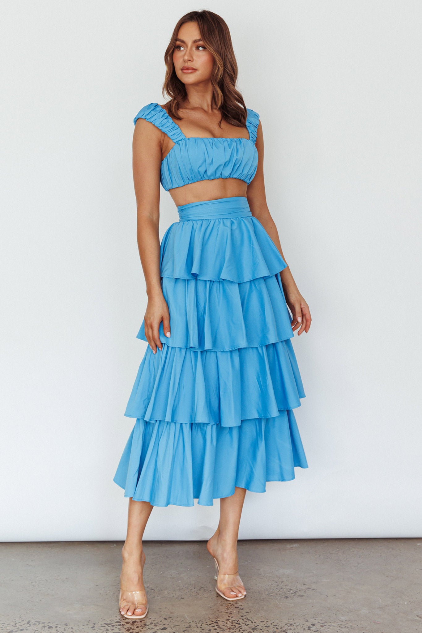 Turn heads in our gorgeous Suenito maxi skirt. Perfect for sunset happy hours, it features tiered frills throughout. Team it with its matching crop top and bright heels for a fun, Summer time look.