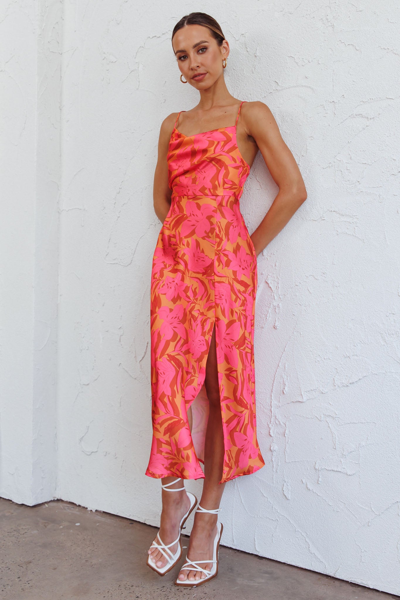 Make an entrance in our gorgeous Suki dress. Featuring a modest but classy silhouette with a sexy front split. We are in love with that cowl neckline and silky fabric. Perfect for a flirty first date teamed with nude, tie-up heels and a clutch.
