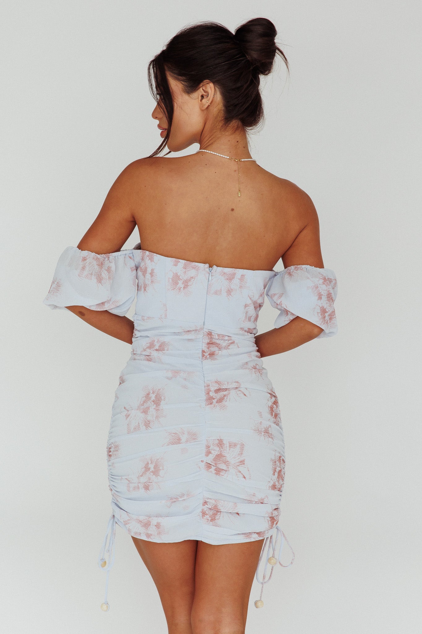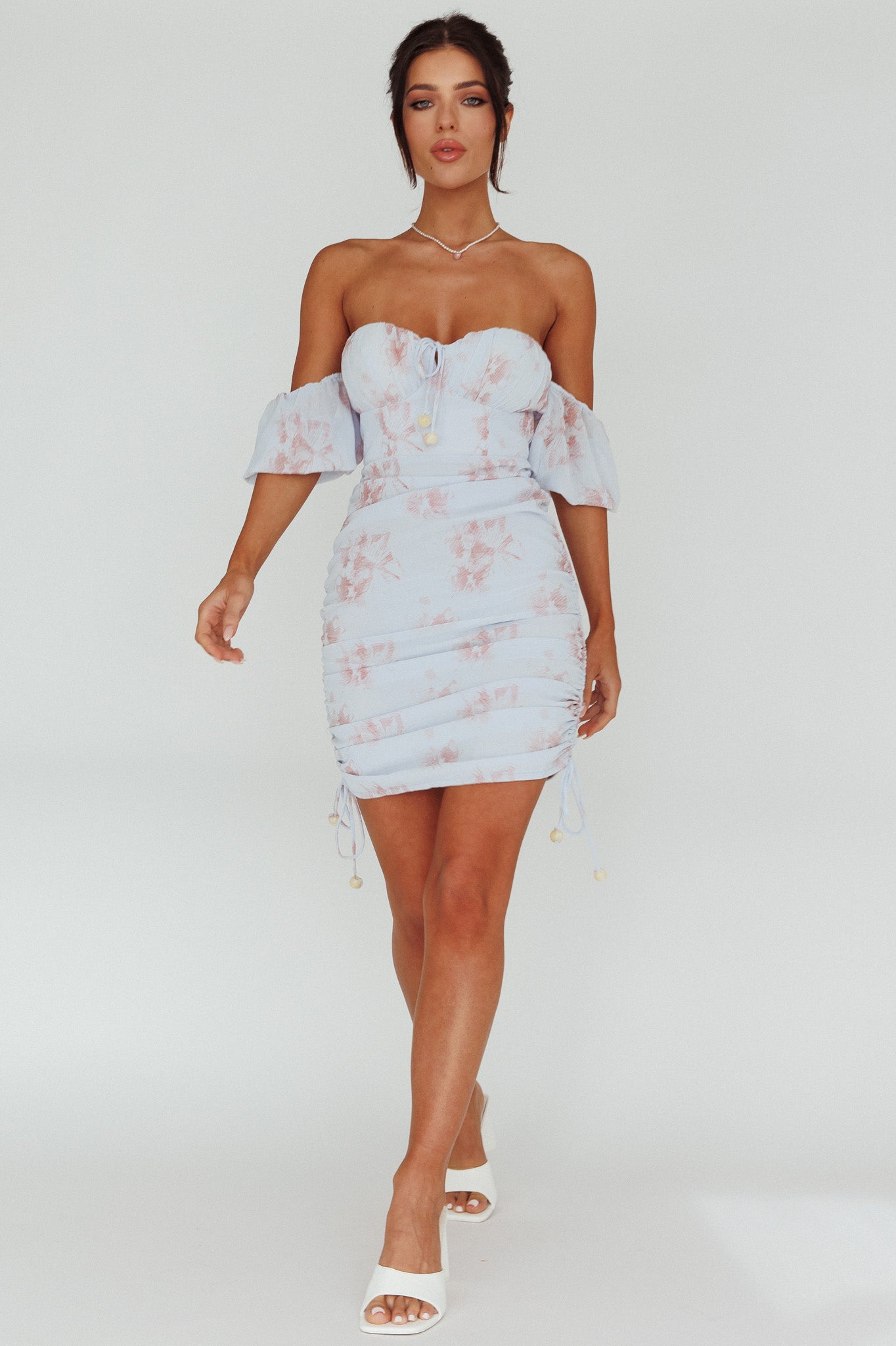 Summer In Paradise Sweetheart Neckline Ruched Side Dress Printed Blue