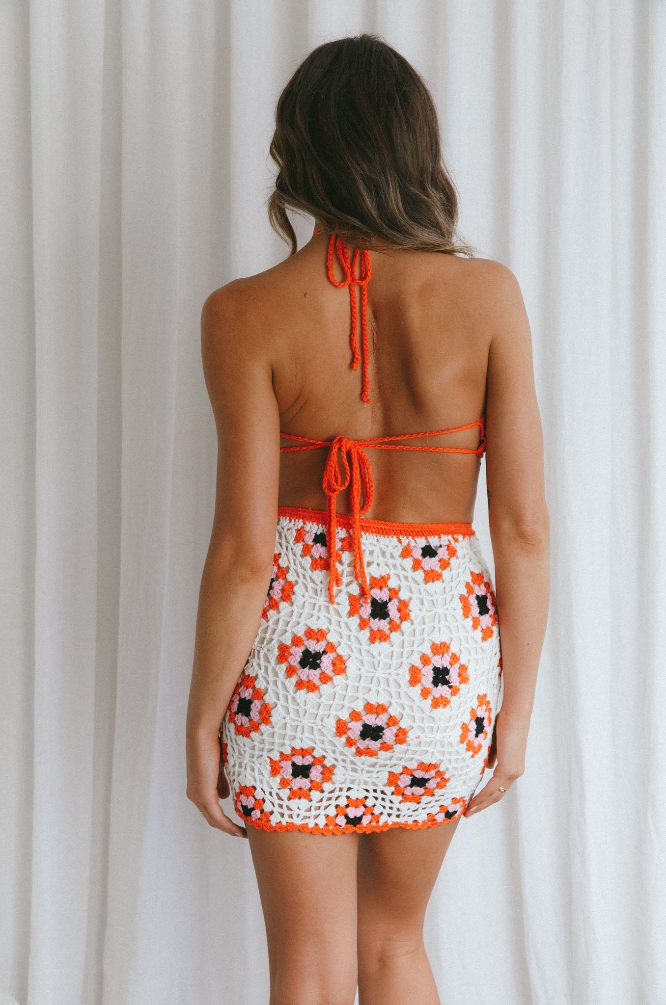 Get ready for some double takes when you float by in our super cute Summer Love mini dress. Featuring a crochet knit fabric and open back, it's perfect for weekend getaways teamed with wedges and a straw tote.