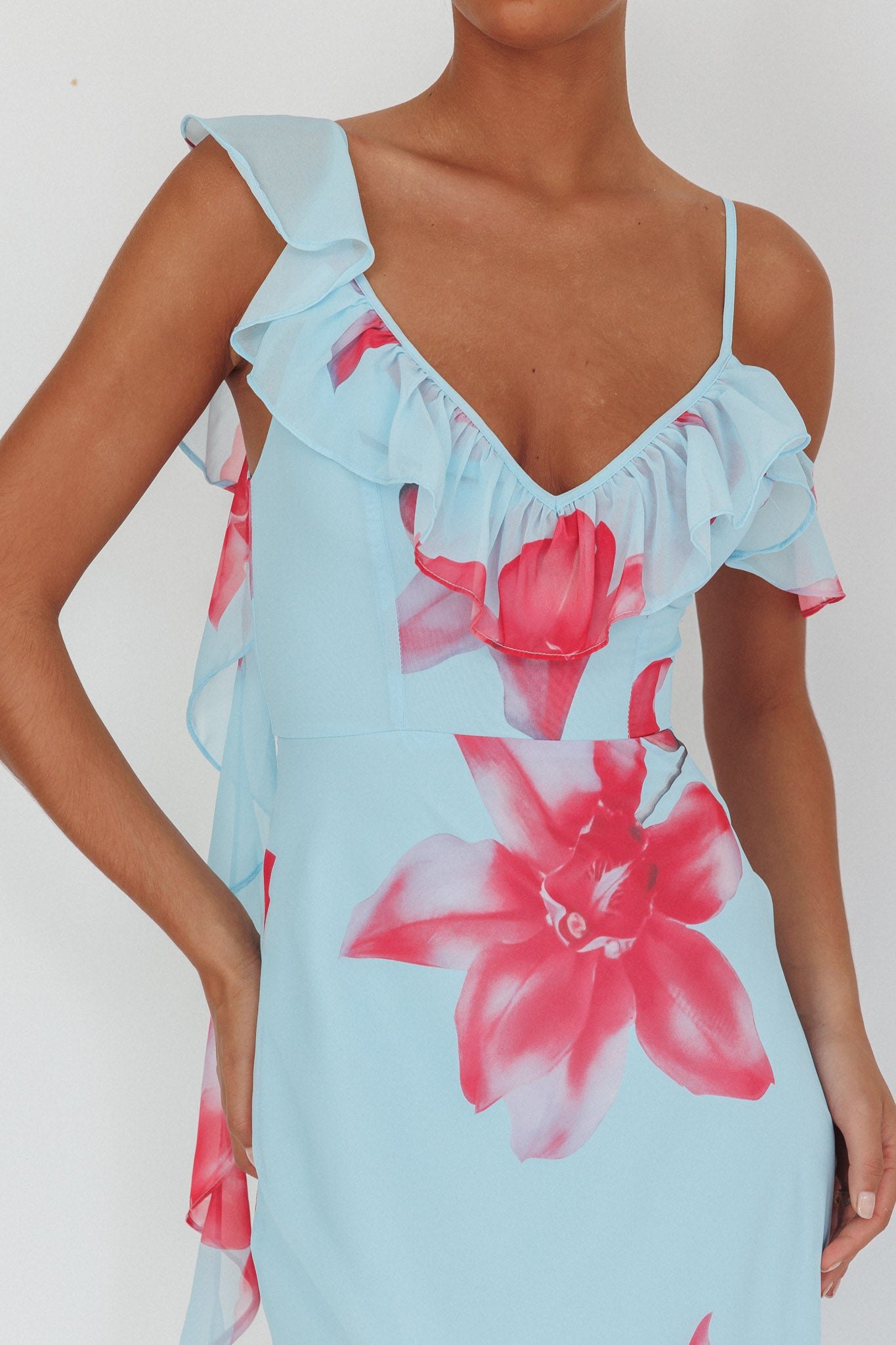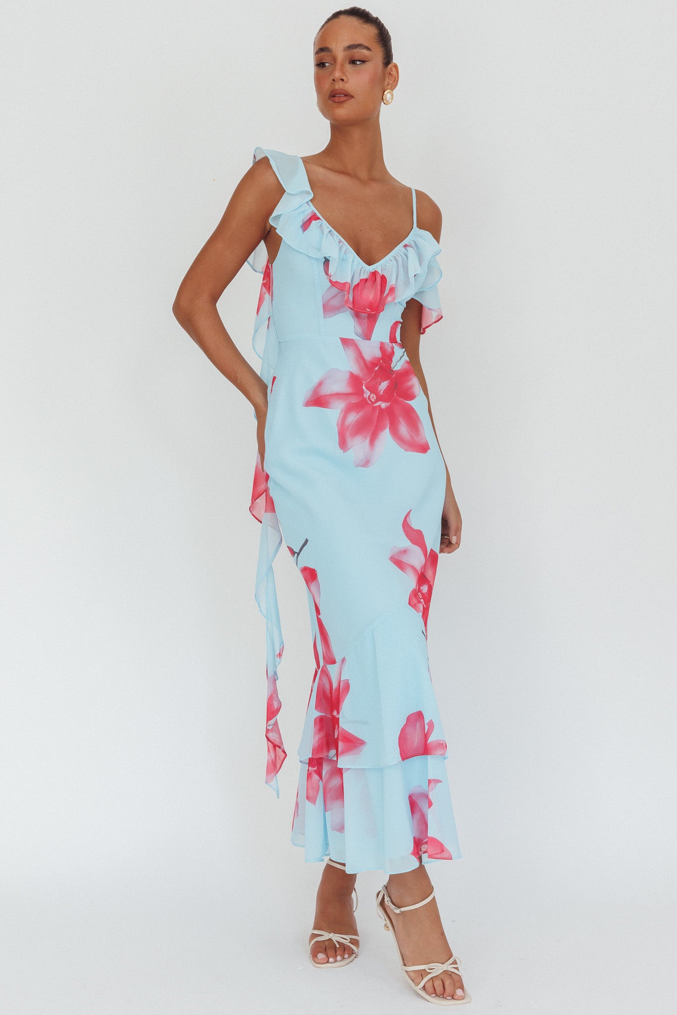 Sun Lover Ruffle Trim Maxi Dress Lily Blue