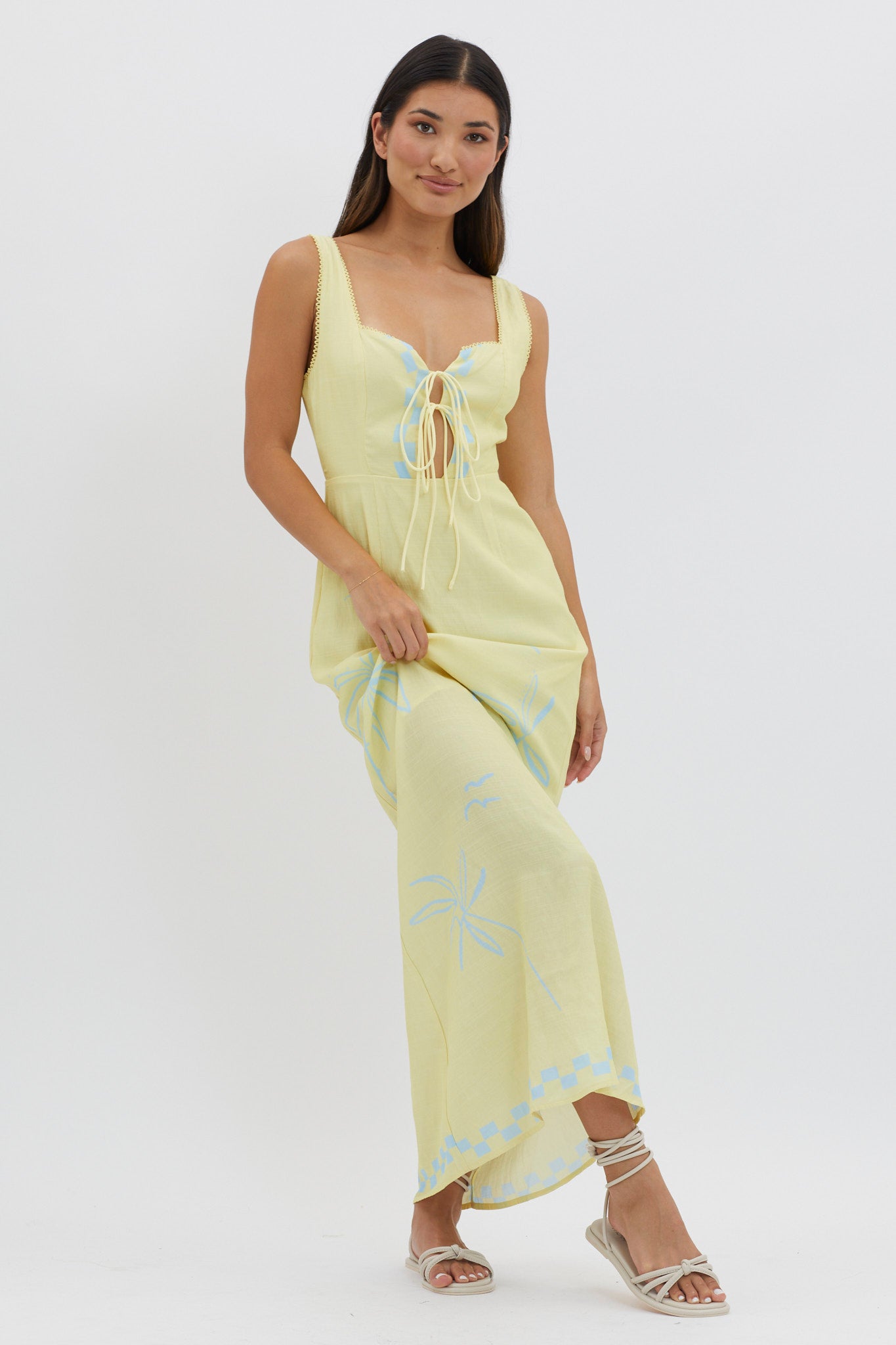 Sun Valley Tied Bodice Maxi Dress Lemon