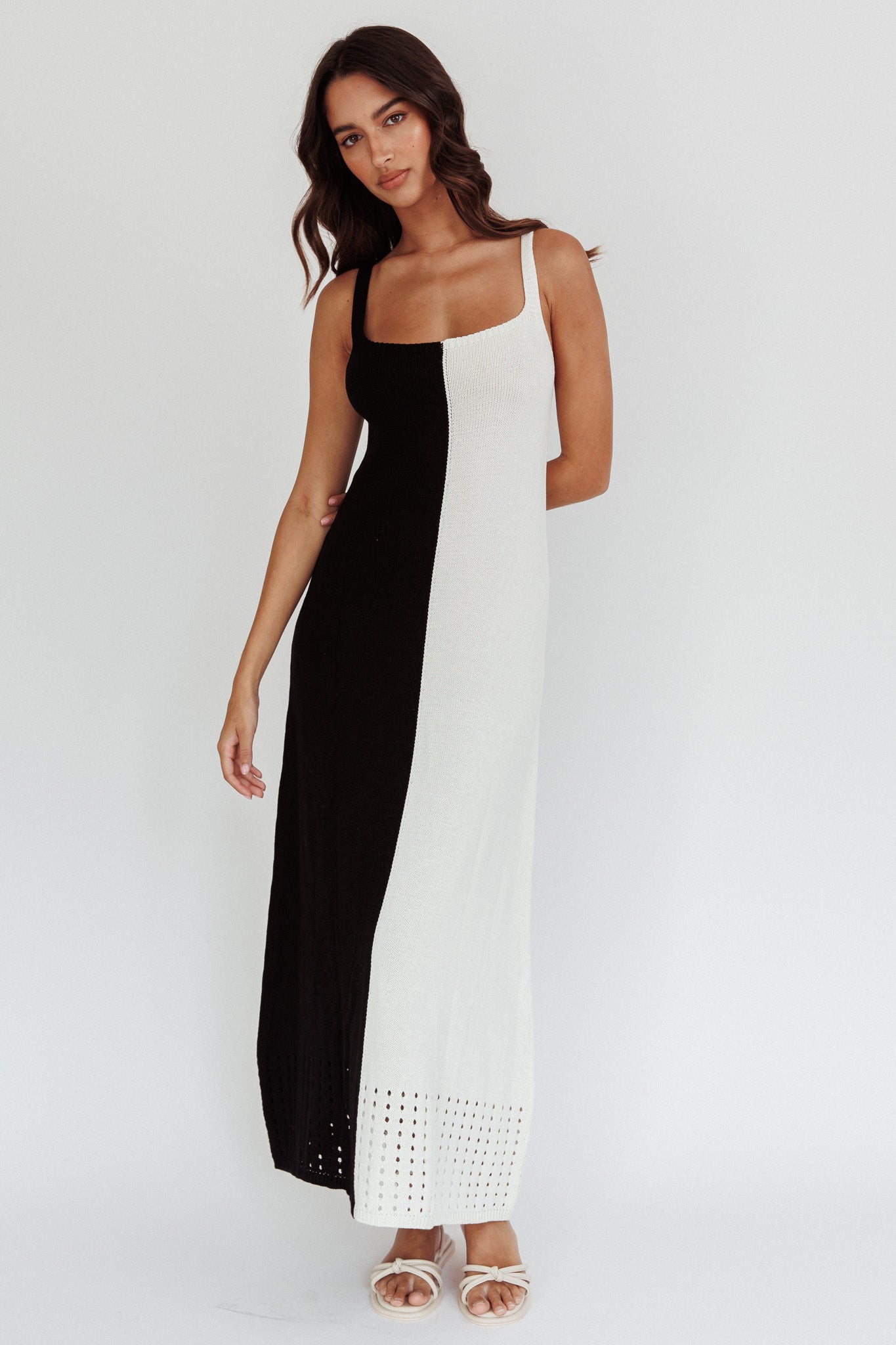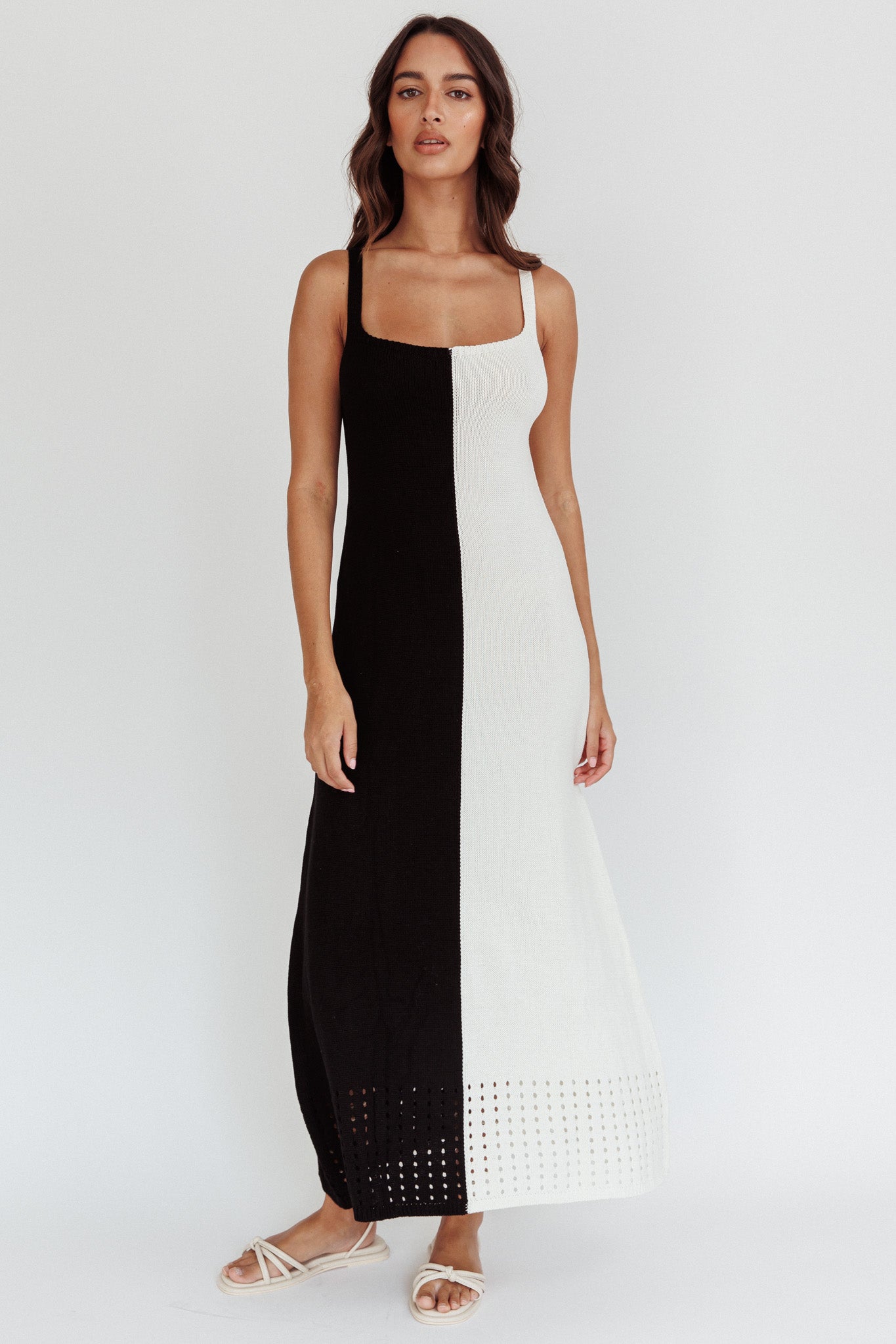 Sunday Fun Day Knit Maxi Dress Black Cream
