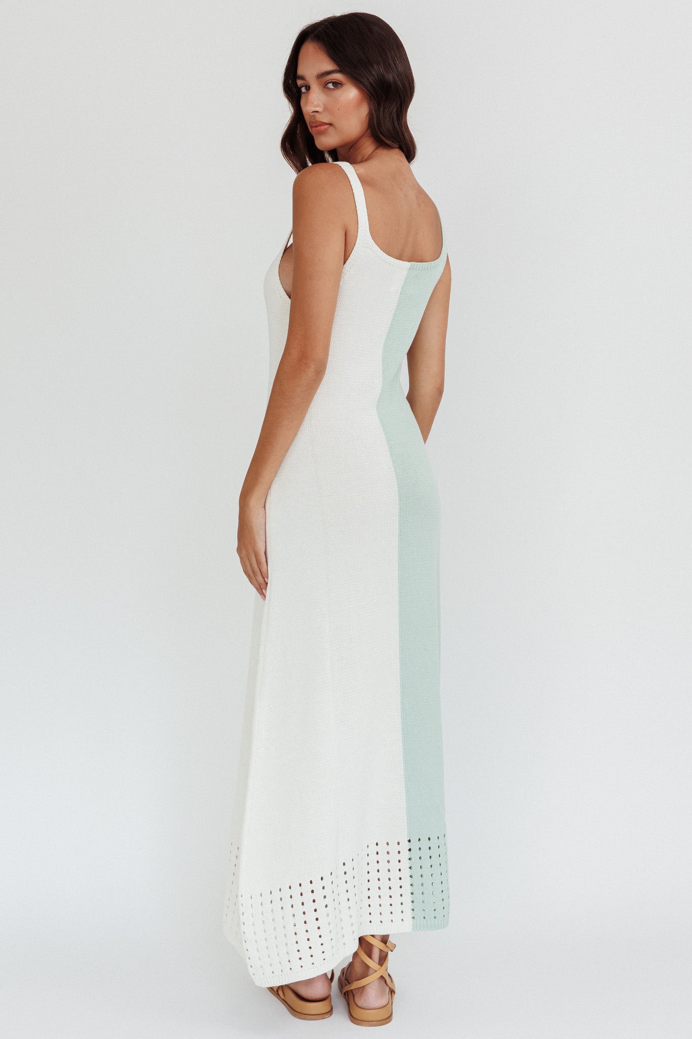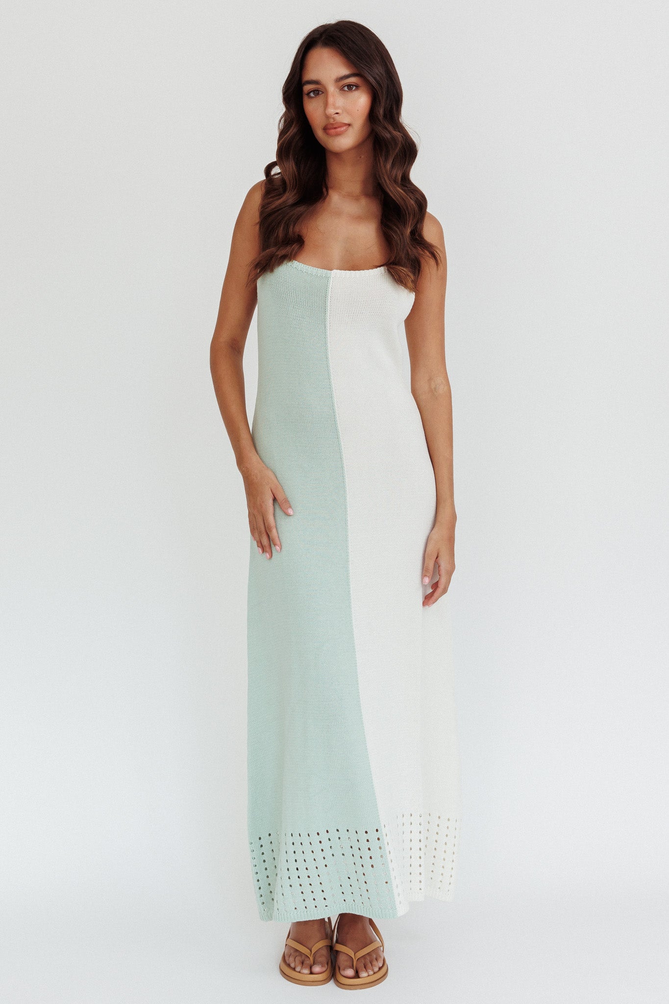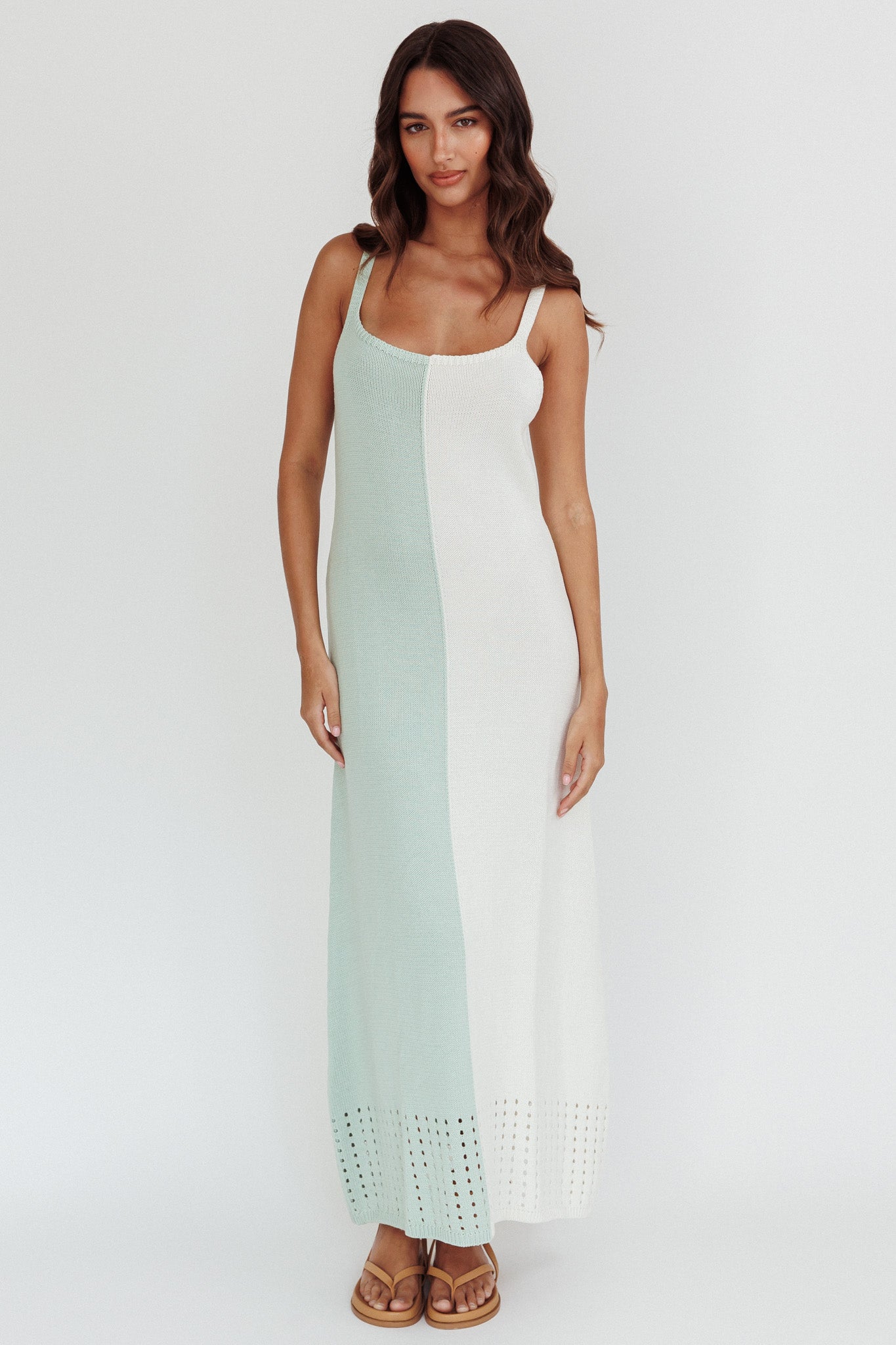 Sunday Fun Day Knit Maxi Dress Sage Cream