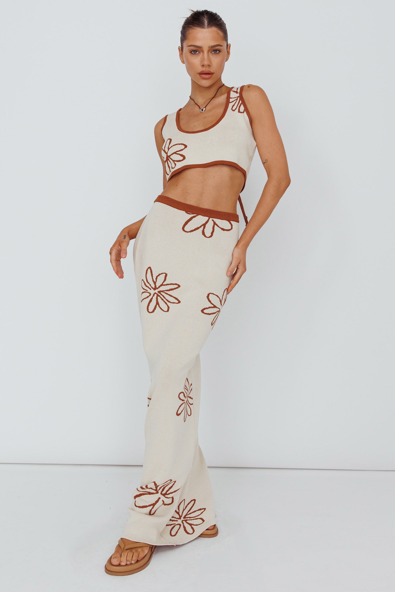Sunland Knit Maxi Skirt Flower Oat Mocha