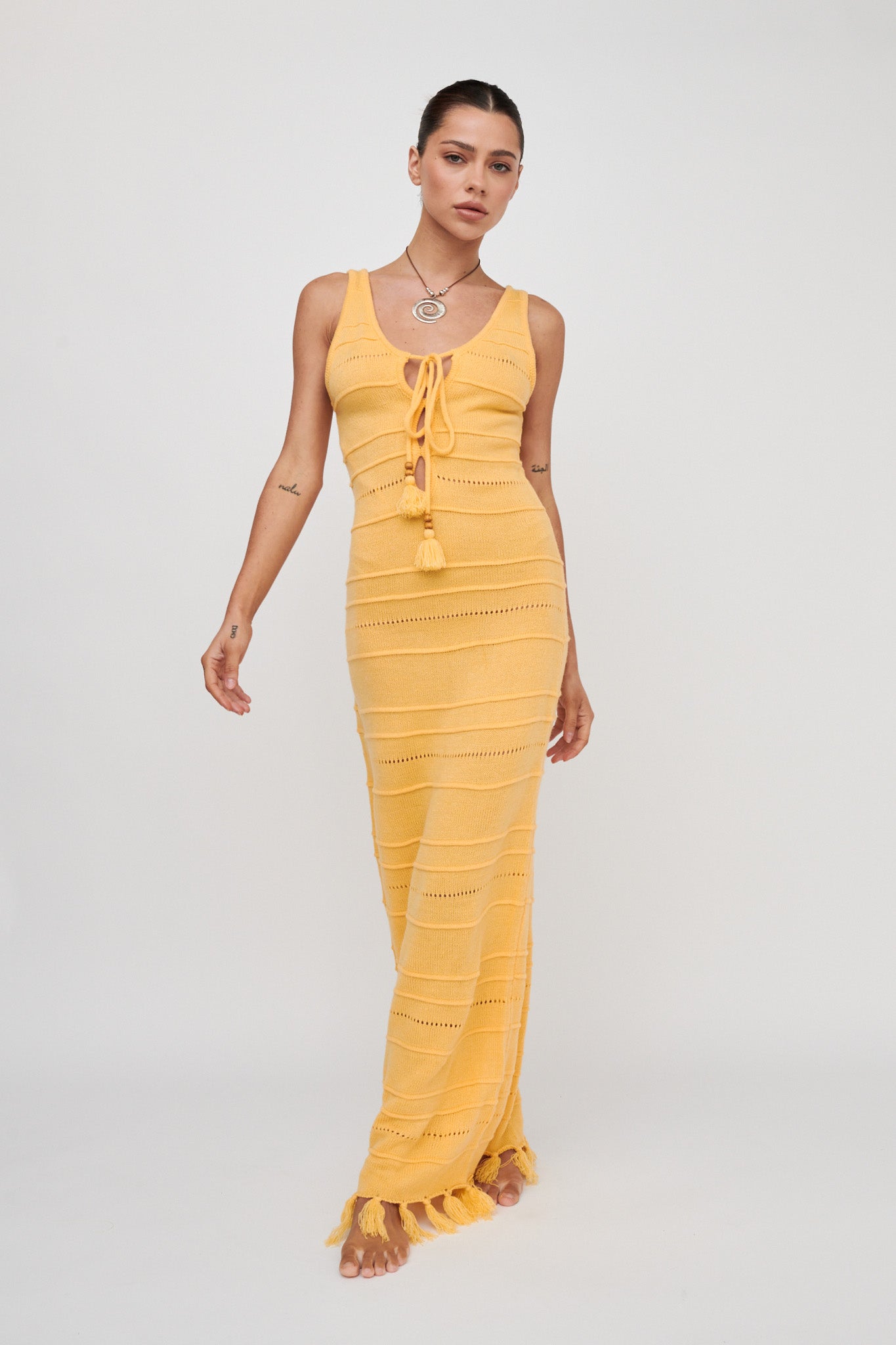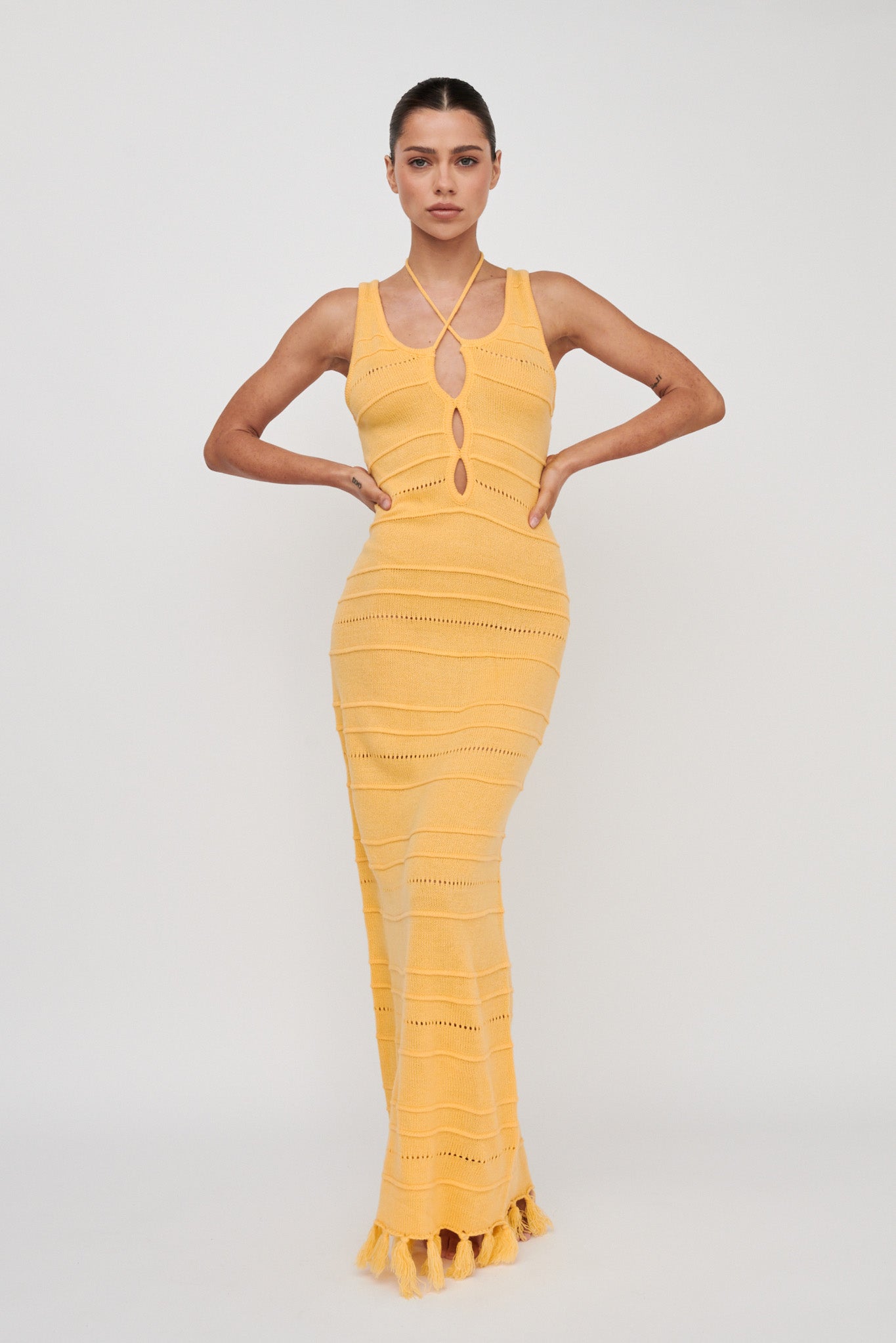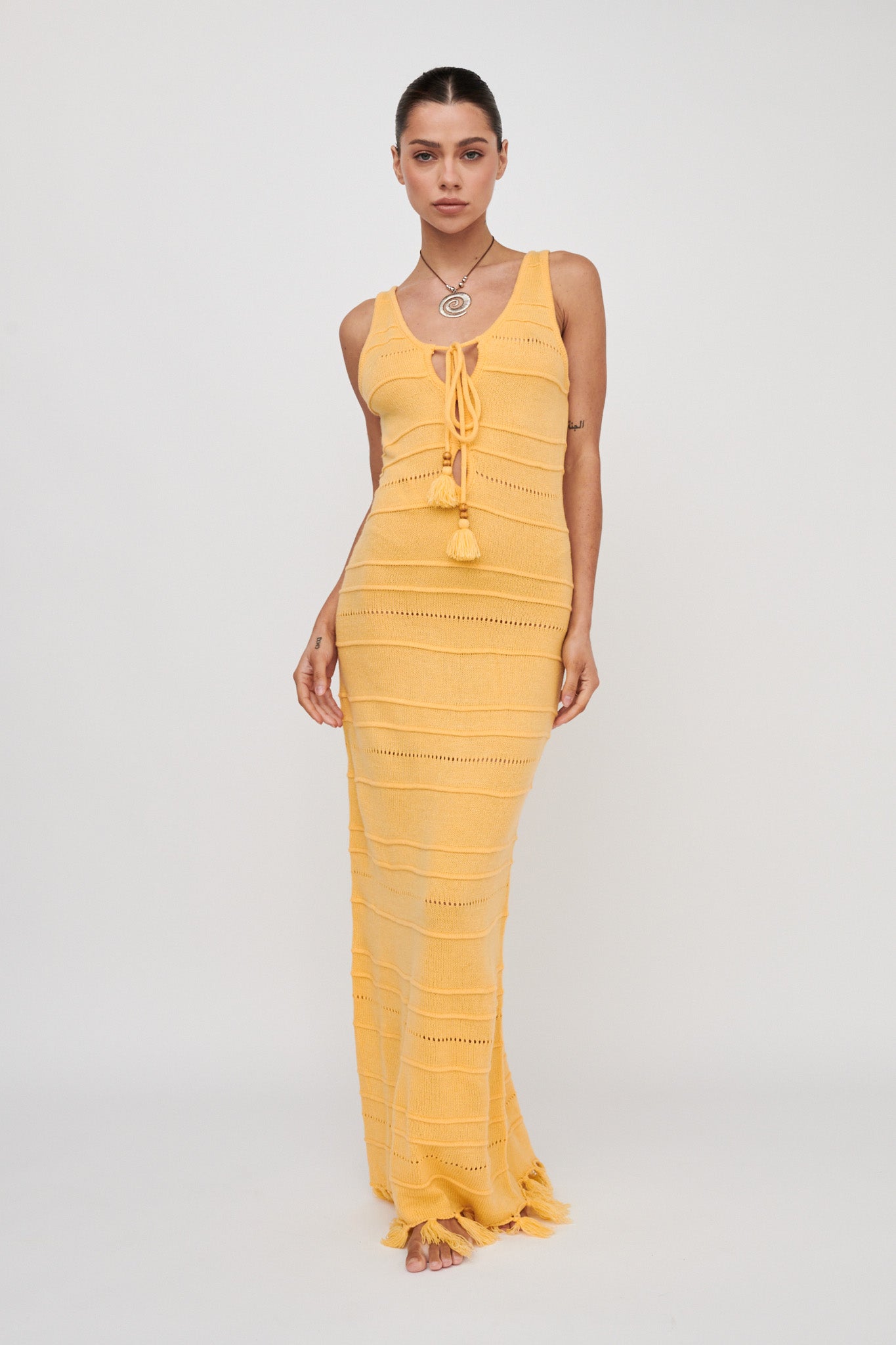 Sunlight Bust Tie Knit Maxi Dress Lemon