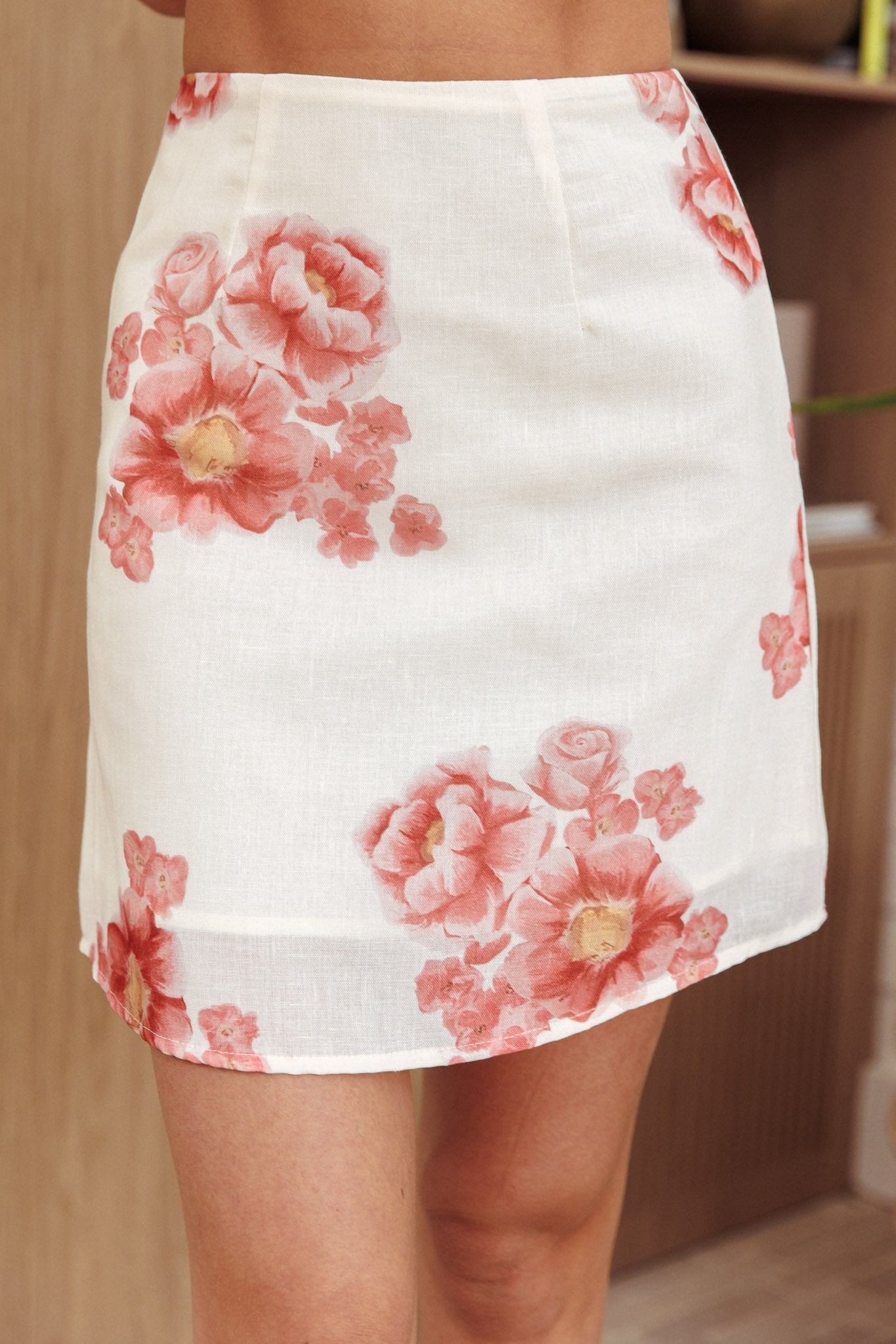Sunlit Grove A-Line Mini Skirt Floral Cream/Red