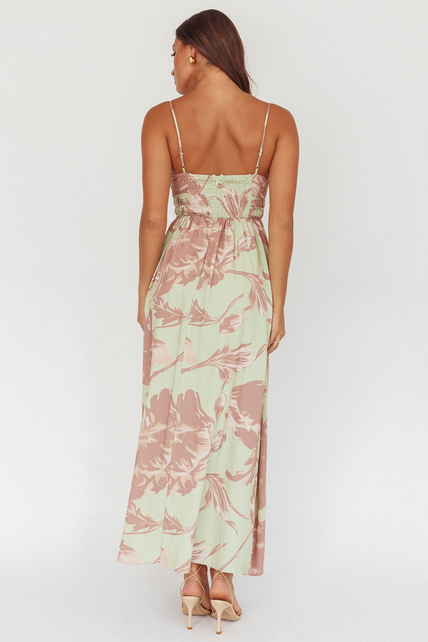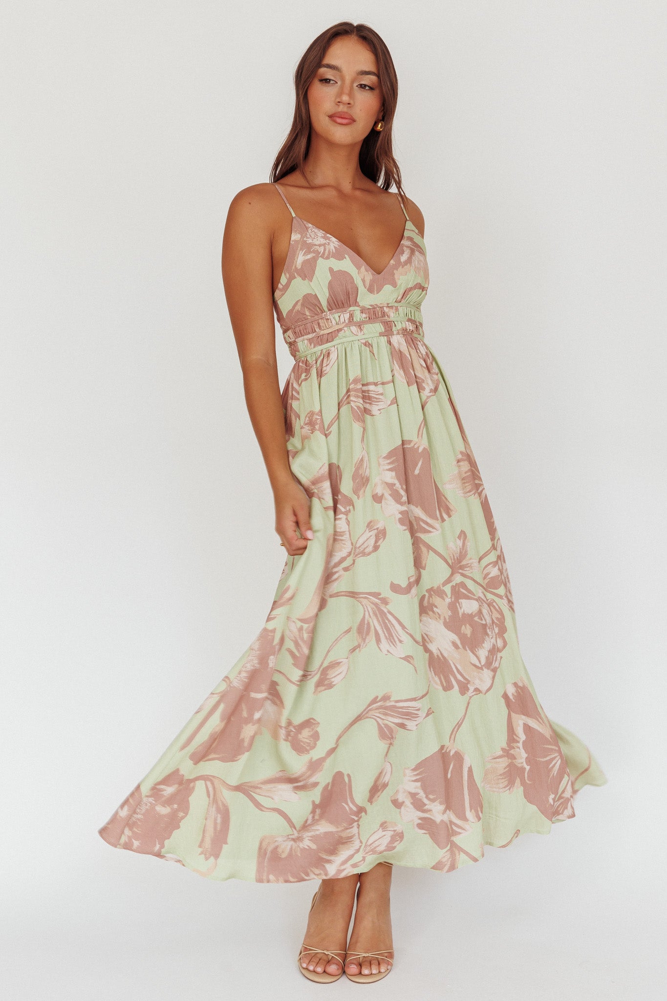 Sunny Afternoon Gathered Waist Maxi Dress Floral Sage