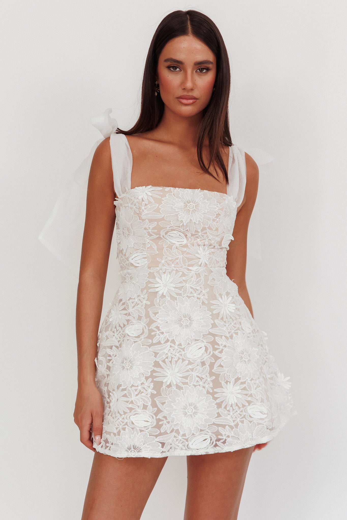 Suns Out Tied Shoulder Embellished Mini Dress White