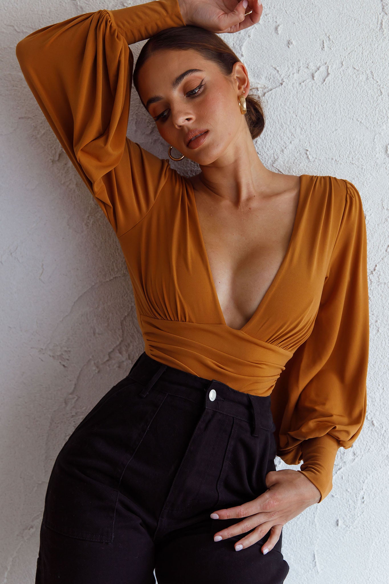 You'll go straight to the best-dressed list in our chic Sunsets In Tahiti bodysuit. Featuring a plunging V-neckline and long, lantern sleeves. Perfect for a glam girls' night out teamed with a skirt and heels for a look we are loving.