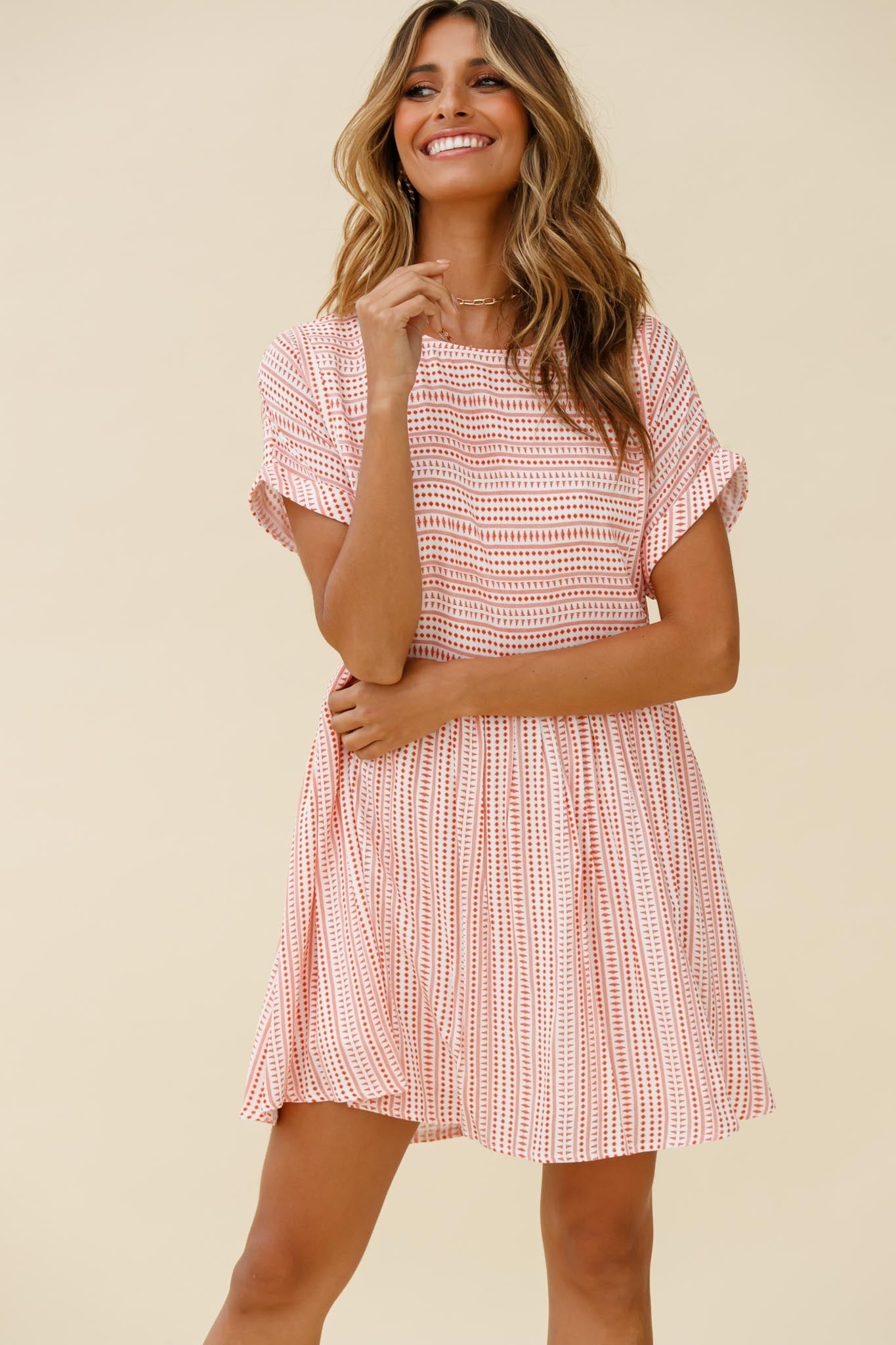 Float through your day in our sweet Susie swing dress. Featuring rolled, t-shirt sleeves and a keyhole button-up back. Perfect for warm Summer days gettting ice cream with your bffs and catching up on the latest goss. Team it with tennis shoes and a head scarf for a cute, casual look we are all about.