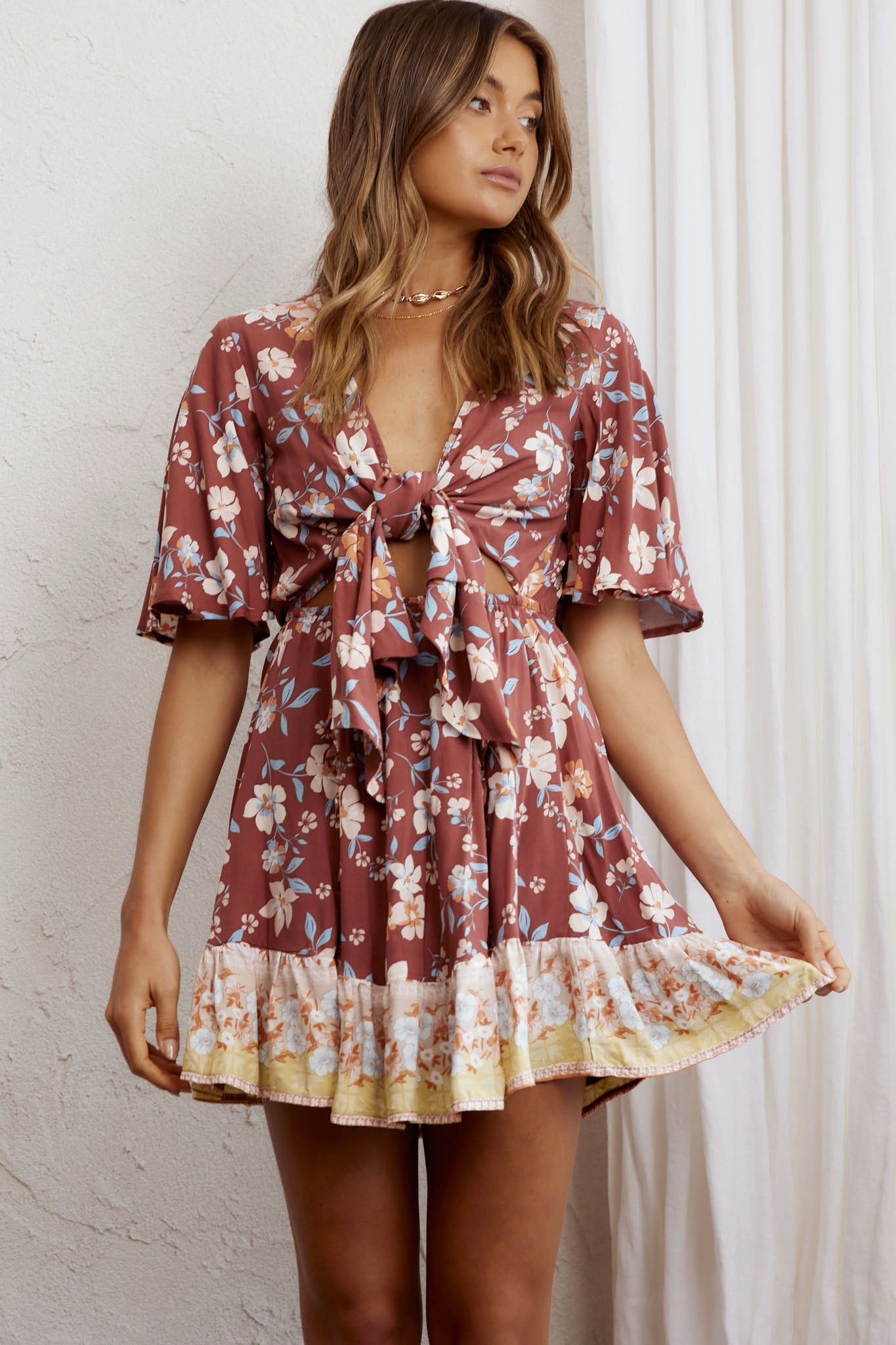 Suva Tie-Knot Bust A-Line Dress Floral Chocolate