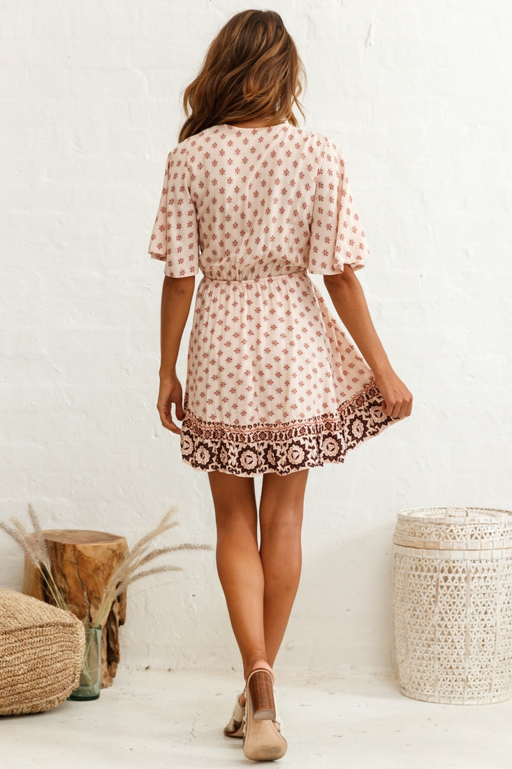 Escape to a tropical paradise in our gorgeous Suva dress. Partially lined, it features a tie-knot bust, elasticated waist, floaty half-sleeves and an A-line skirt. Perfect for those warm summer days teamed with hessian wedges and a straw tote. Paradise!