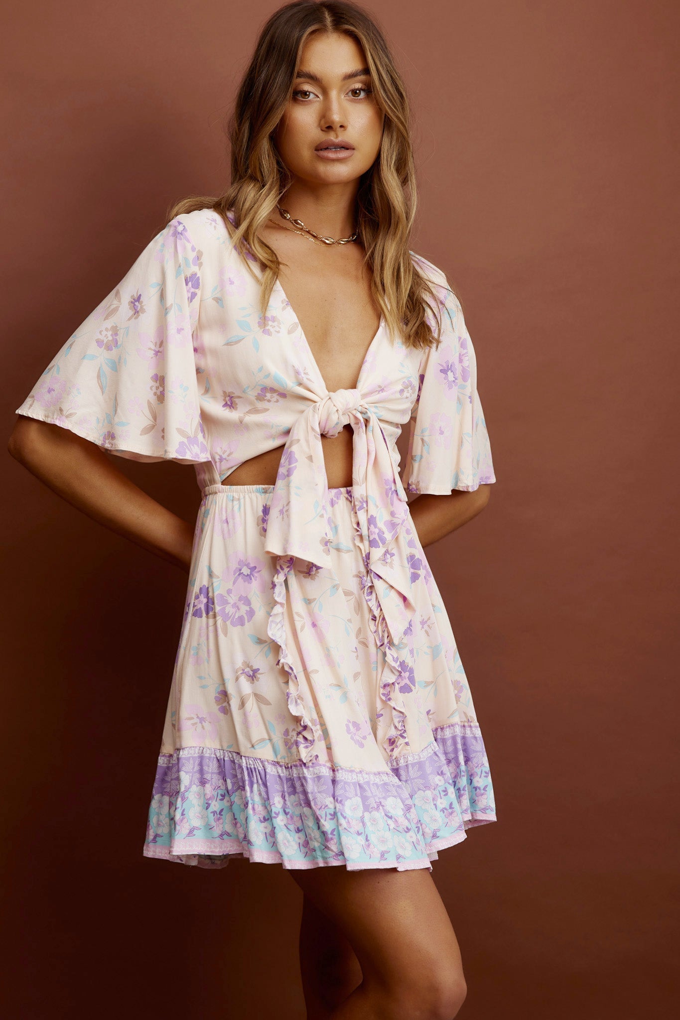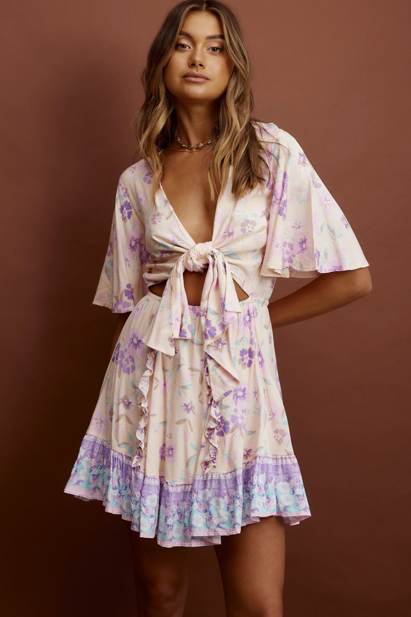 Escape to a tropical paradise in our gorgeous Suva dress. How cute is that tie-knot bust detail and cut-out waist feature? Perfect for those warm summer days teamed with hessian wedges and a straw tote. You'll look like paradise!