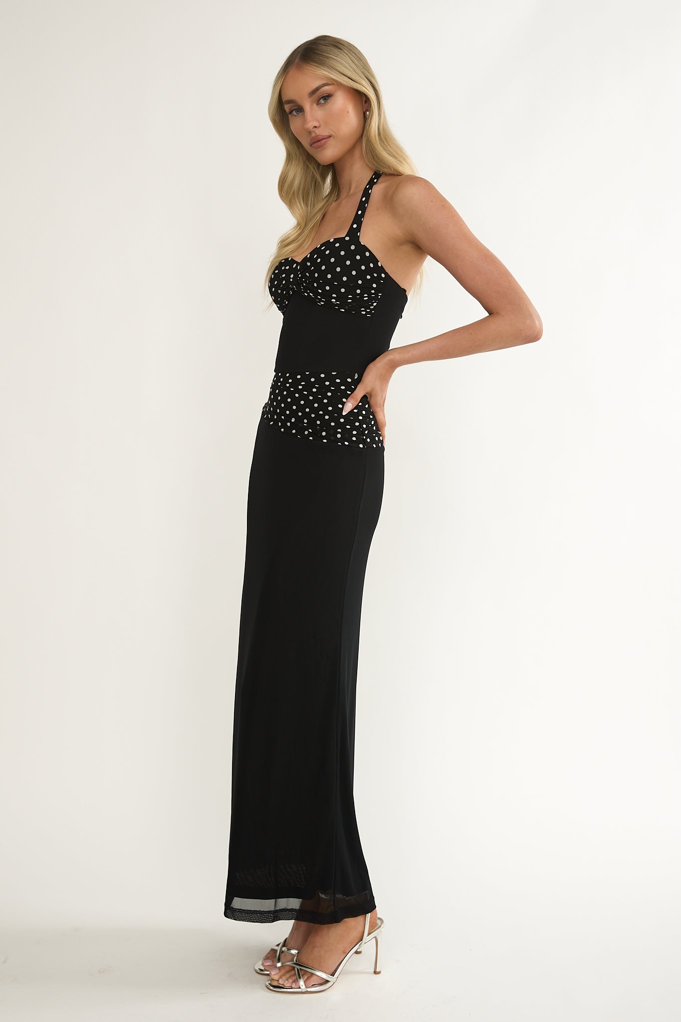 Swan Halterneck Ruched Waist Maxi Dress Black