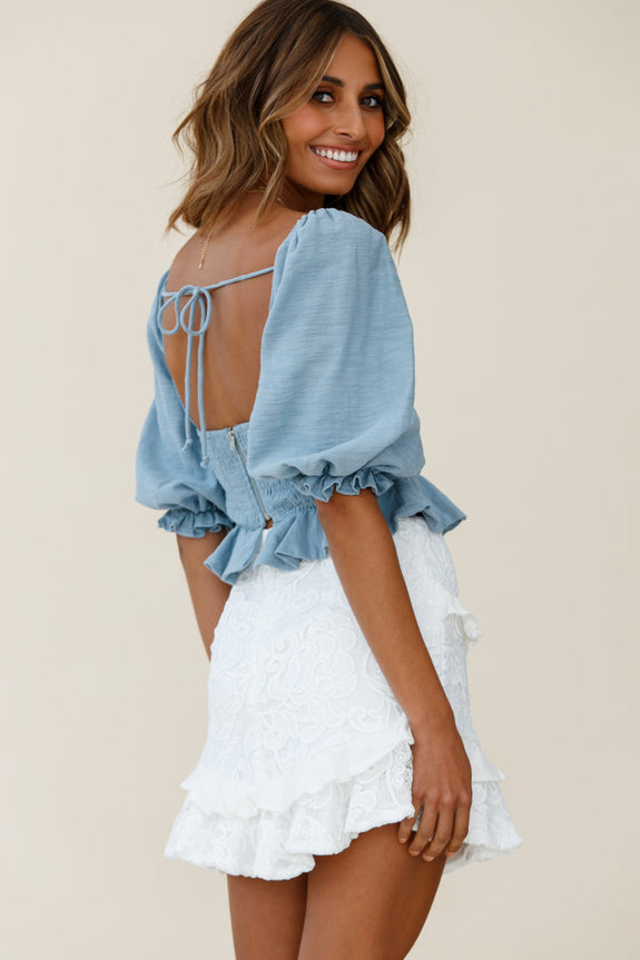 Sweet Dreams Puff Sleeve Bow Detail Crop Top Blue