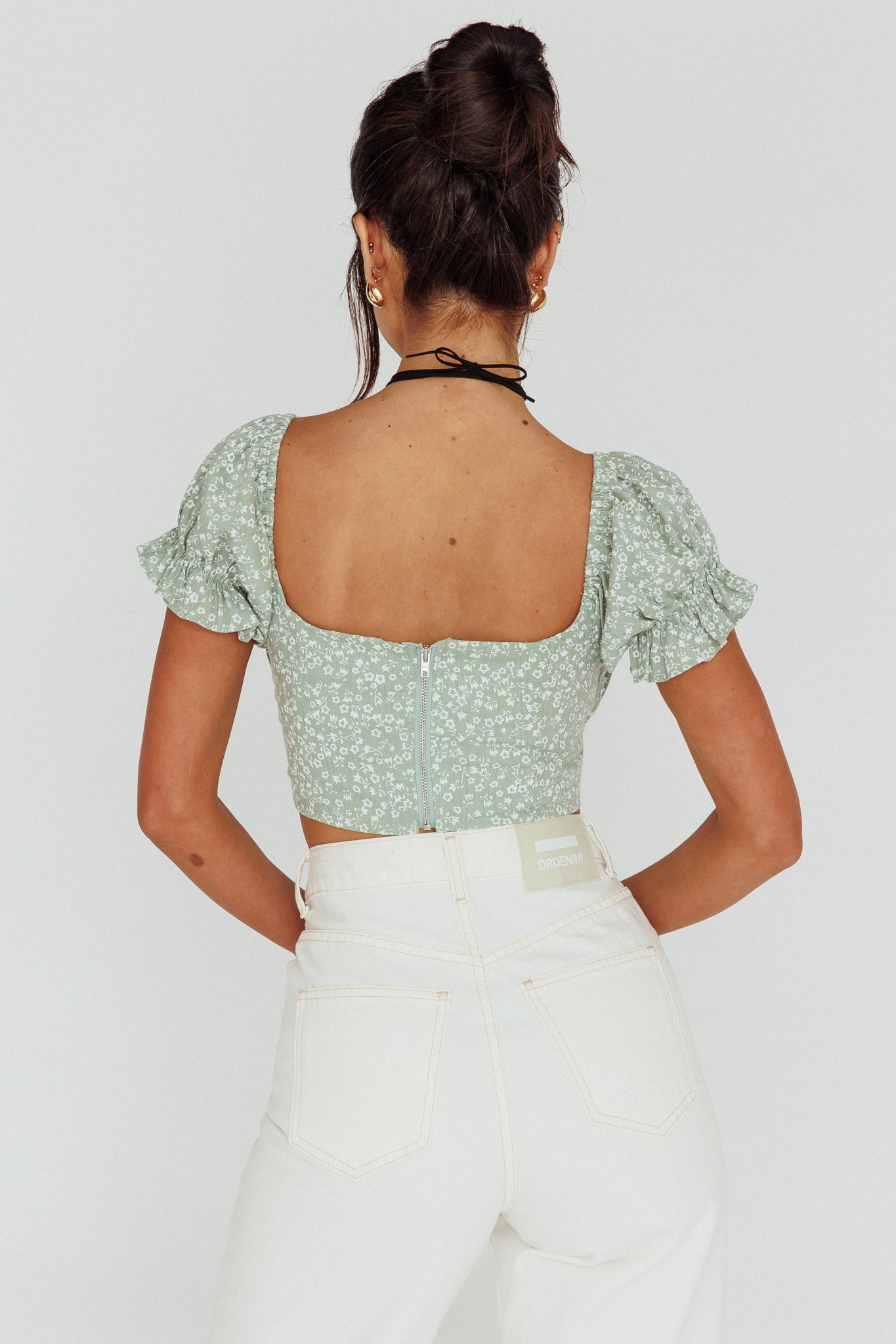 Sweet Romance Sweetheart Neckline Crop Top Floral Sage
