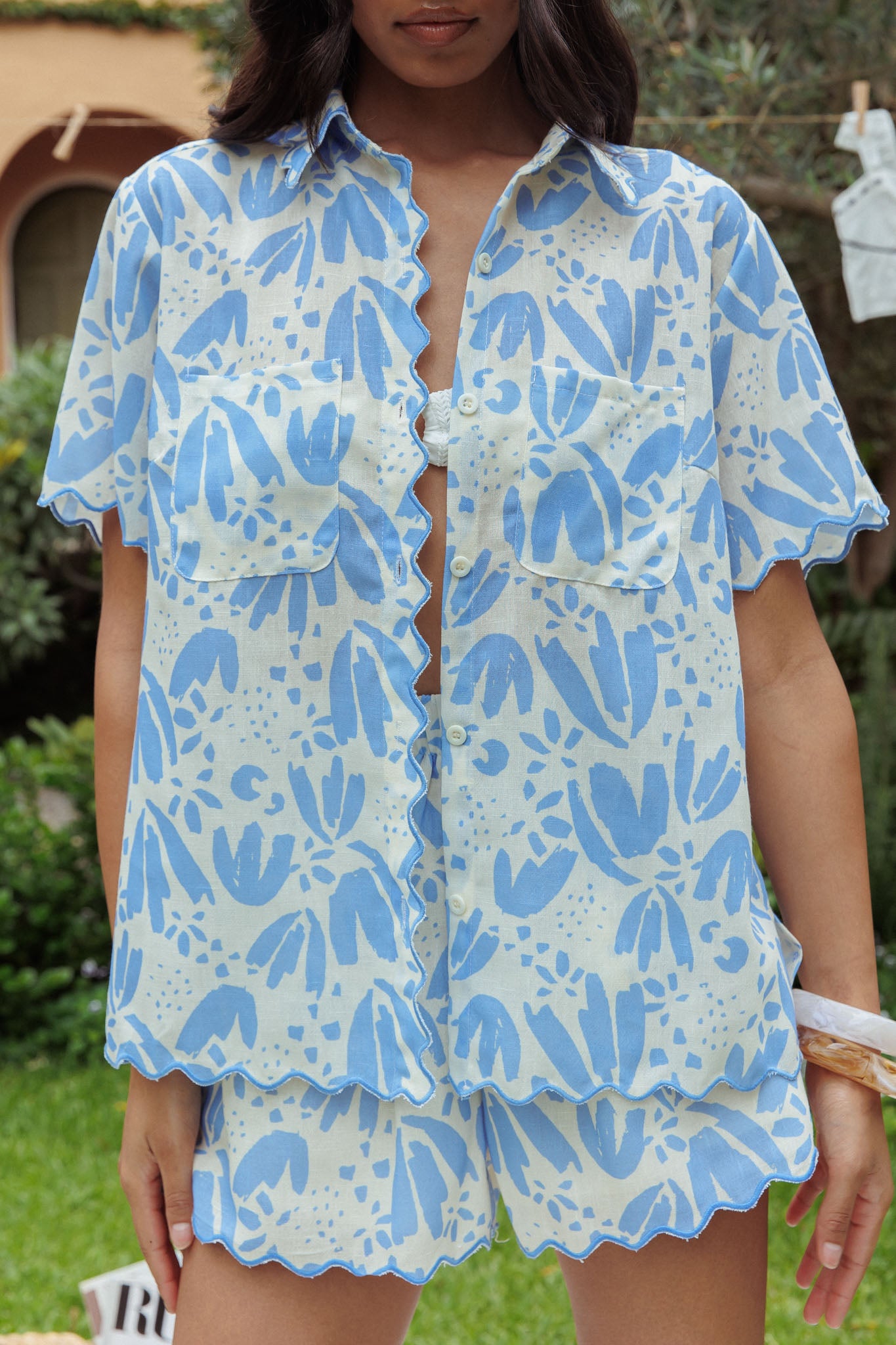 Swing Of Things Scalloped Edge Shirt Print Blue